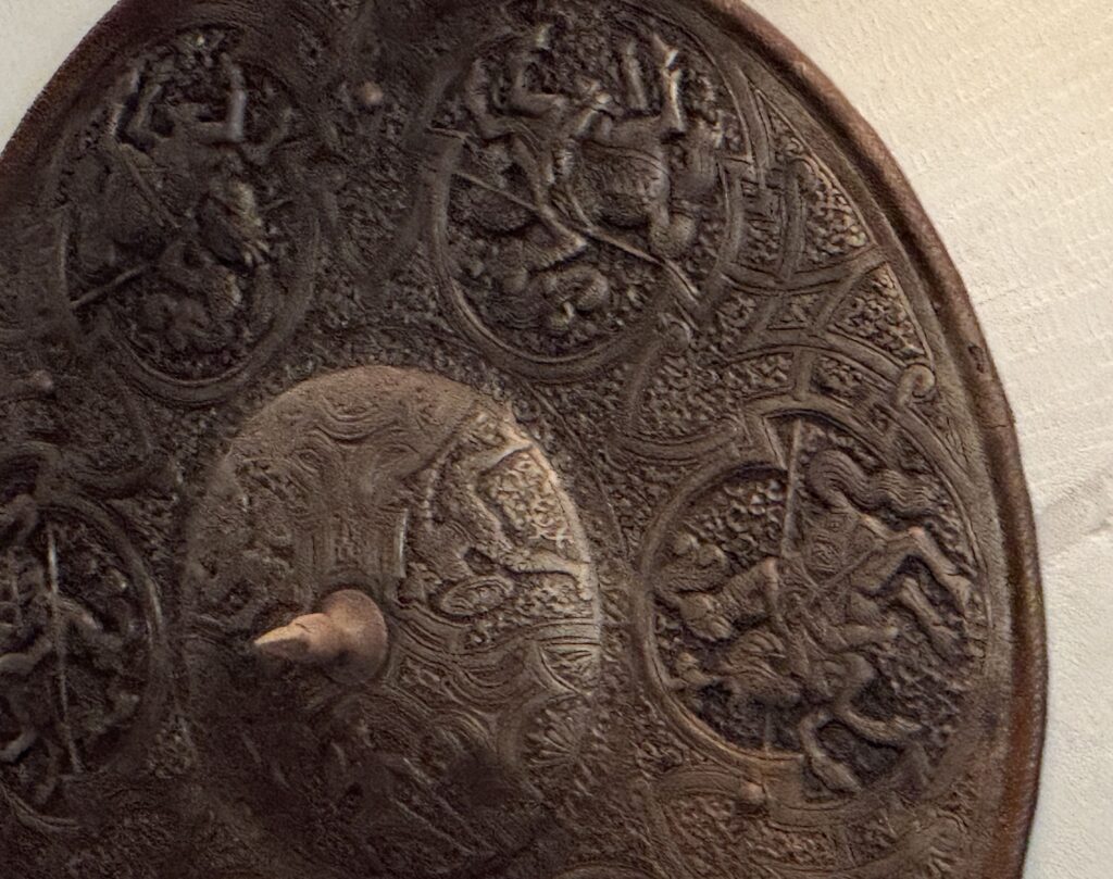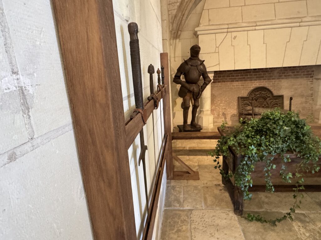 Стойки для мечей в зале охраны. Также в этом зале можно увидеть круглый щит, доспехи, оружие в стиле XVI в.
