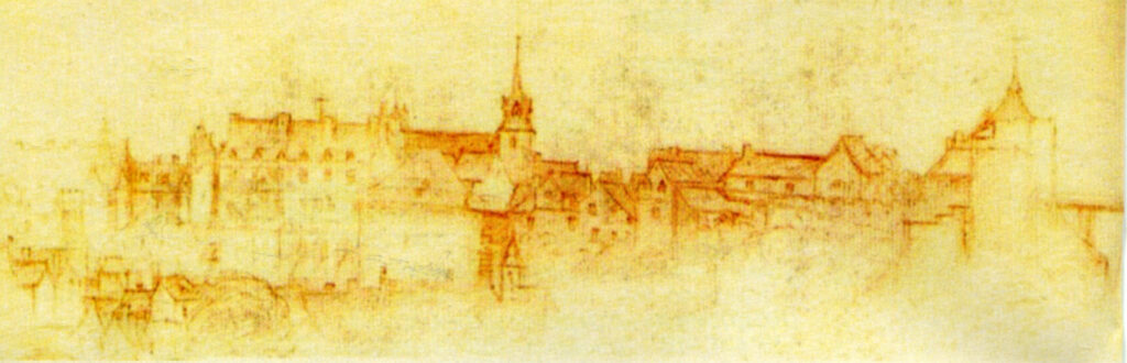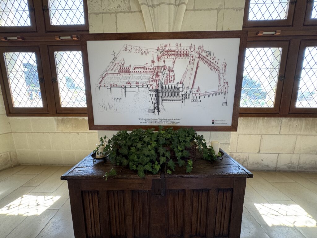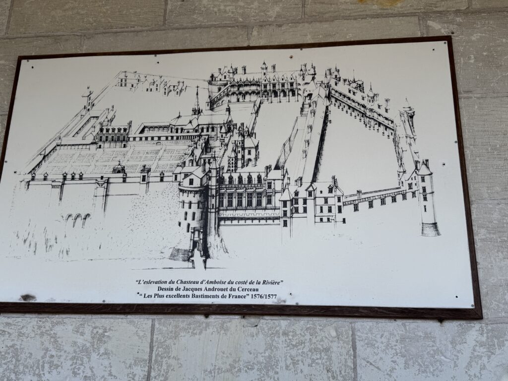 Амбуаз на рисунке Леонардо да Винчи, который переехал сюда в 1516 году по приглашению Франциска I. Леонардо умер в Амбуазе в 1519 году.