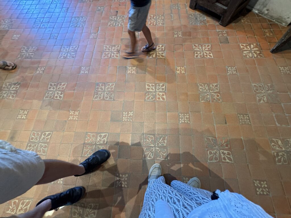 — Пол из терракотовых изразцов, украшенных геральдическими лилиями, в духе XV в.