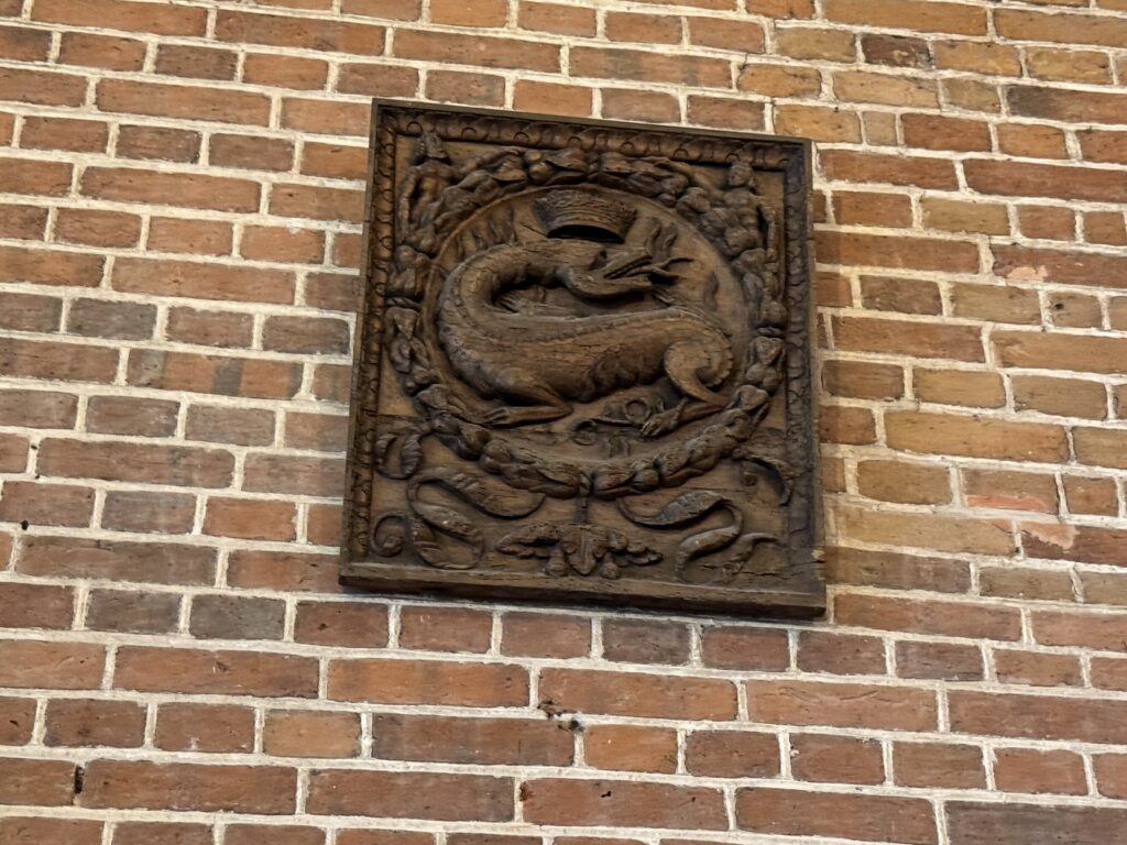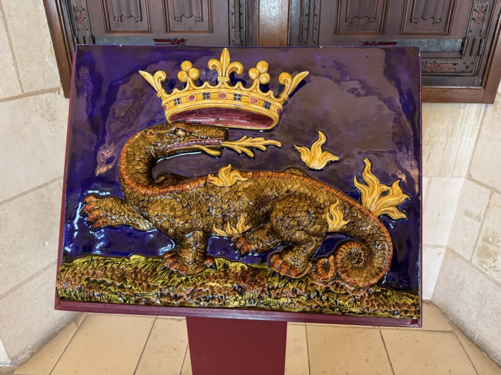 — Деревянное панно справа от входа: Саламандра, эмблема Франциска I»