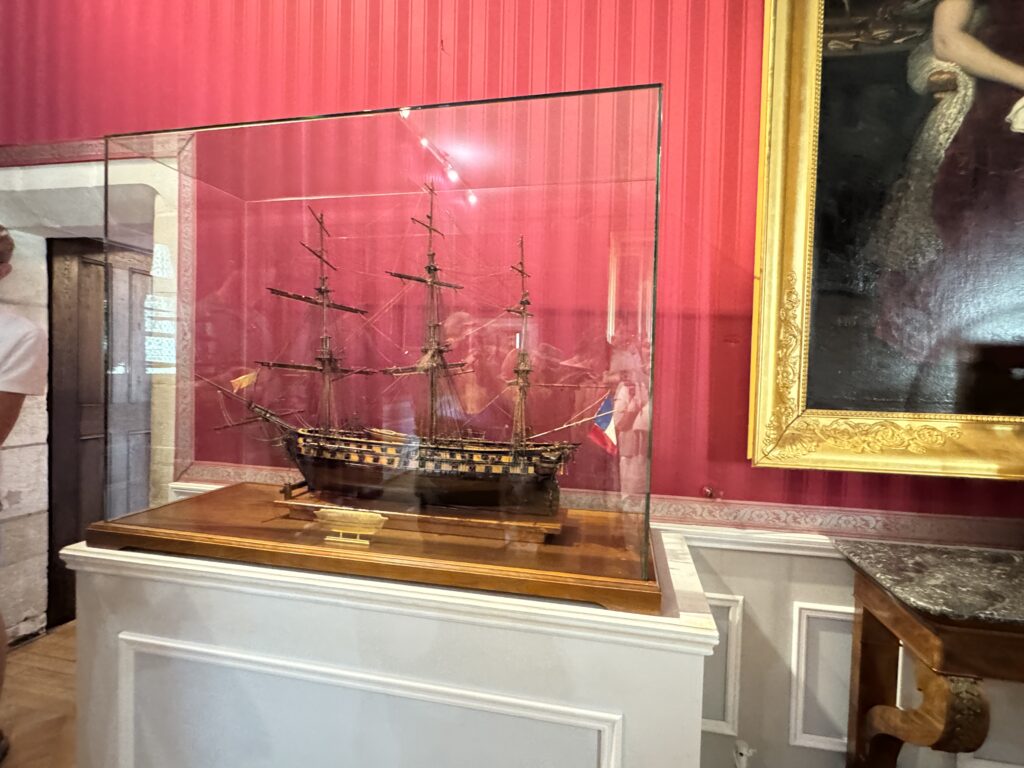 Портрет мадам Аделаиды (1777-1847), сестры короля, кисти Кура. Макет судна «Бель Пуль», на котором, под командованием принца де Жуанвиль во Францию был возвращен прах Наполеона I, скончавшегося на острове Святой Елены.
