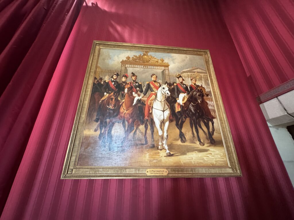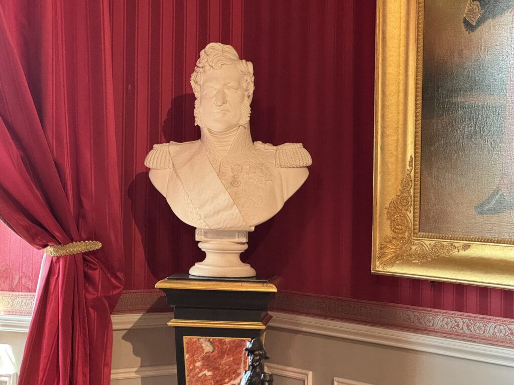 Бюст Луи-Филипп I. Портреты Фердинанда-Филиппа Орлеанского (1810-1842), герцога Орлеанского (старшего сына Louis-Philippe I и Марии Амалии Неаполитанской) и Елены Мекленбург-Шверинской (1814-1858), герцогини Орлеанской, копия работ Франца Ксавера Винтерхальтера. Картина «Луи-Филипп в сопровождении сыновей» на выходе из Версаля, копия картины Ораса Верне «Луи-Филипп, король французов»