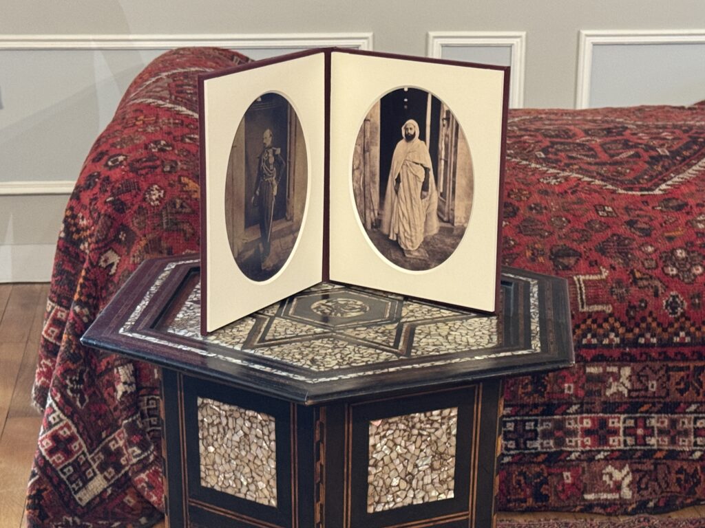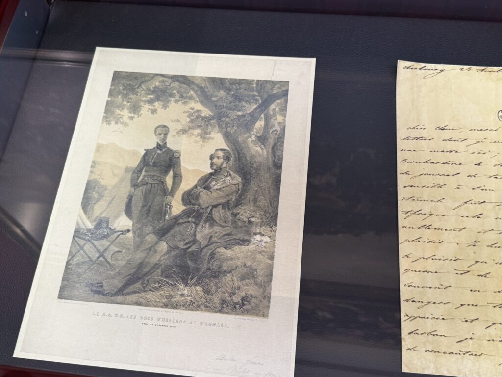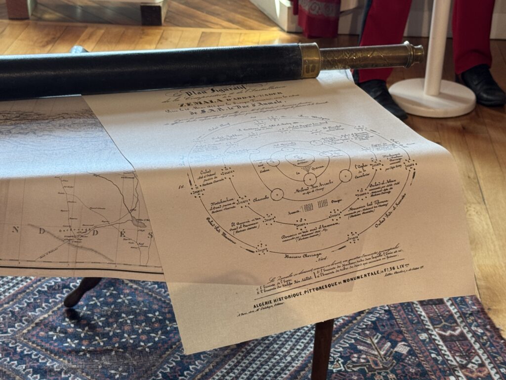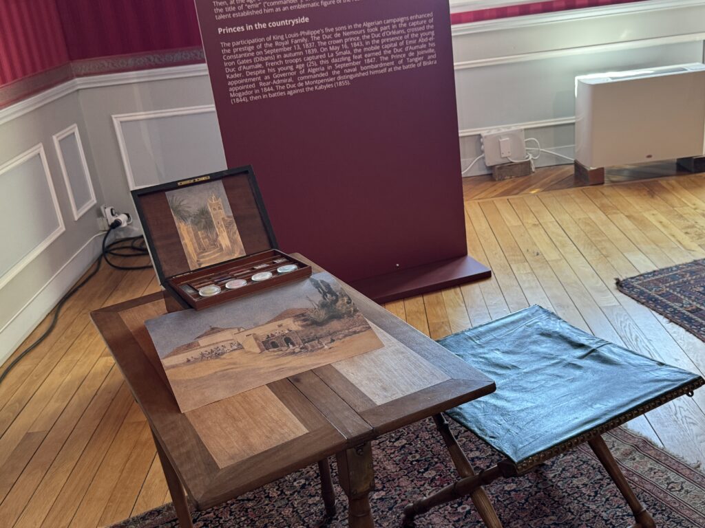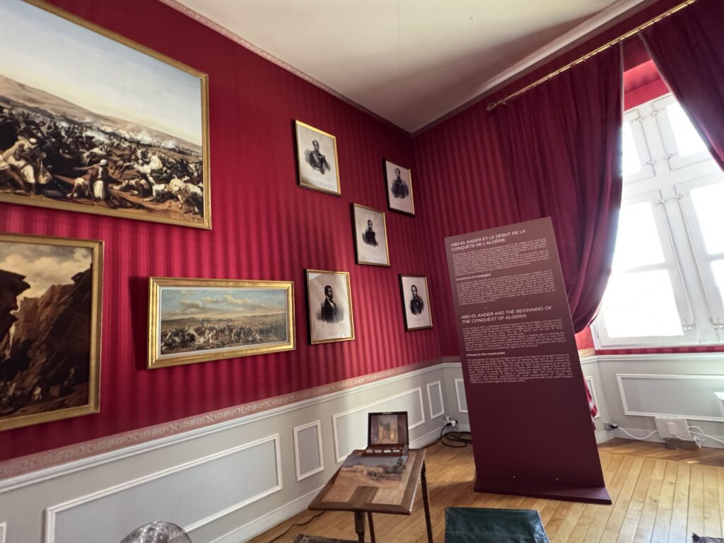 Портрет эмира Абд-аль-Кадира (1808- 1883) углем, копия работы Анжа Тиссье. Фотография эмира Абд-аль-Кадира (1808- 1883) на пороге одной из дверей замка, работы Гюстава Ле Грея (1820-1884), на мольберте. Портрет генерала Генриха Орлеанского (1822-1887), герцога Омальского, копия с работы Леона Бонна. Покорение Алжира: Абд-аль-Кадир, государственный пленник»