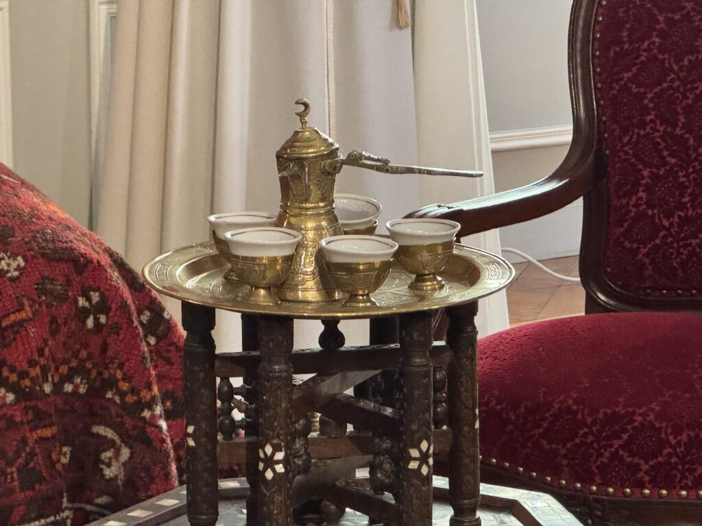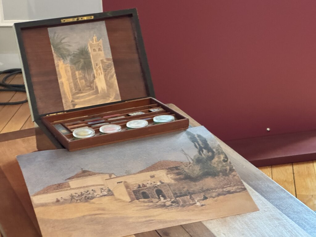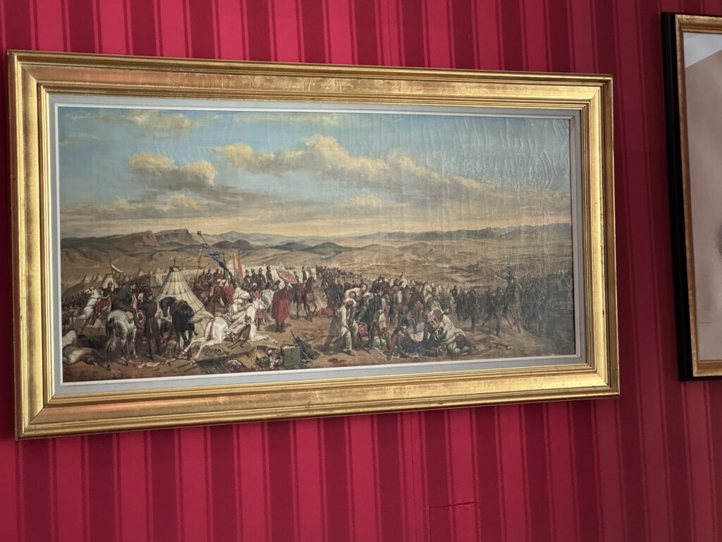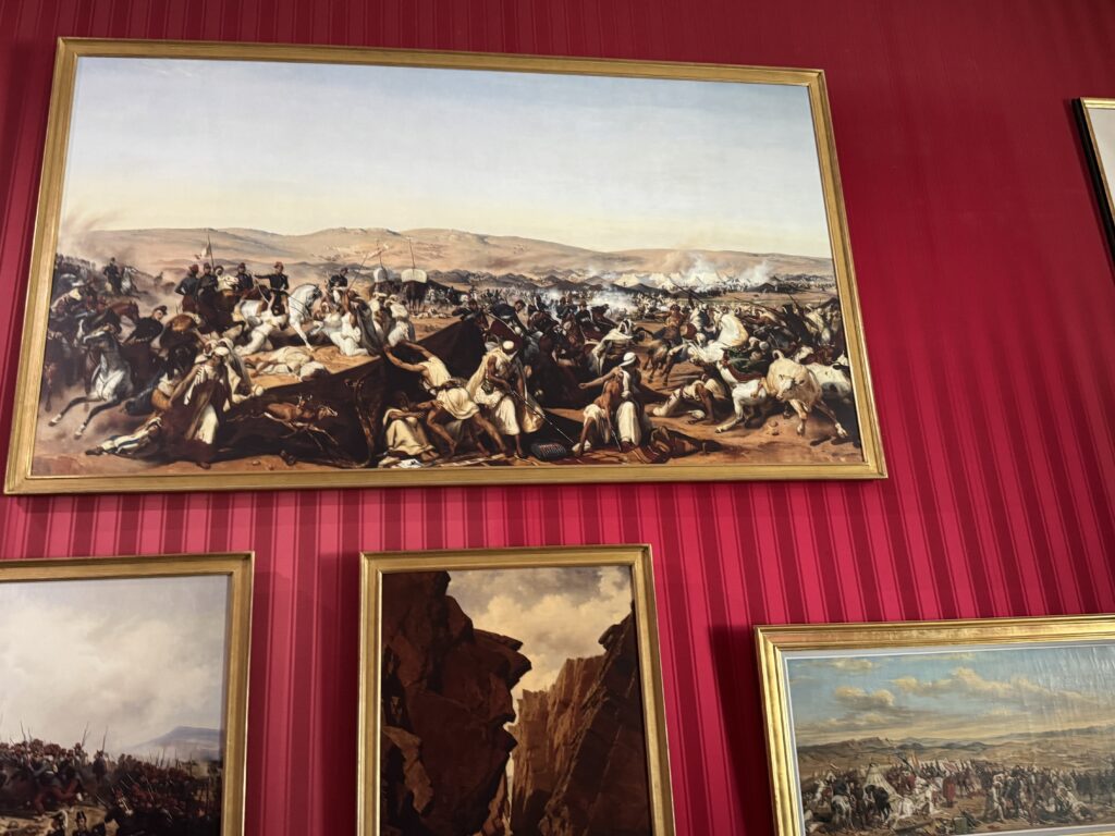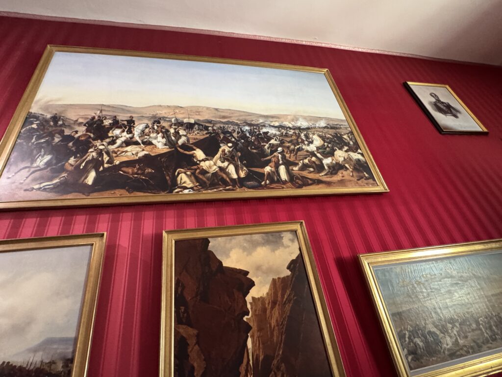 Портрет эмира Абд-аль-Кадира (1808- 1883) углем, копия работы Анжа Тиссье. Фотография эмира Абд-аль-Кадира (1808- 1883) на пороге одной из дверей замка, работы Гюстава Ле Грея (1820-1884), на мольберте. Портрет генерала Генриха Орлеанского (1822-1887), герцога Омальского, копия с работы Леона Бонна. Покорение Алжира: Абд-аль-Кадир, государственный пленник»