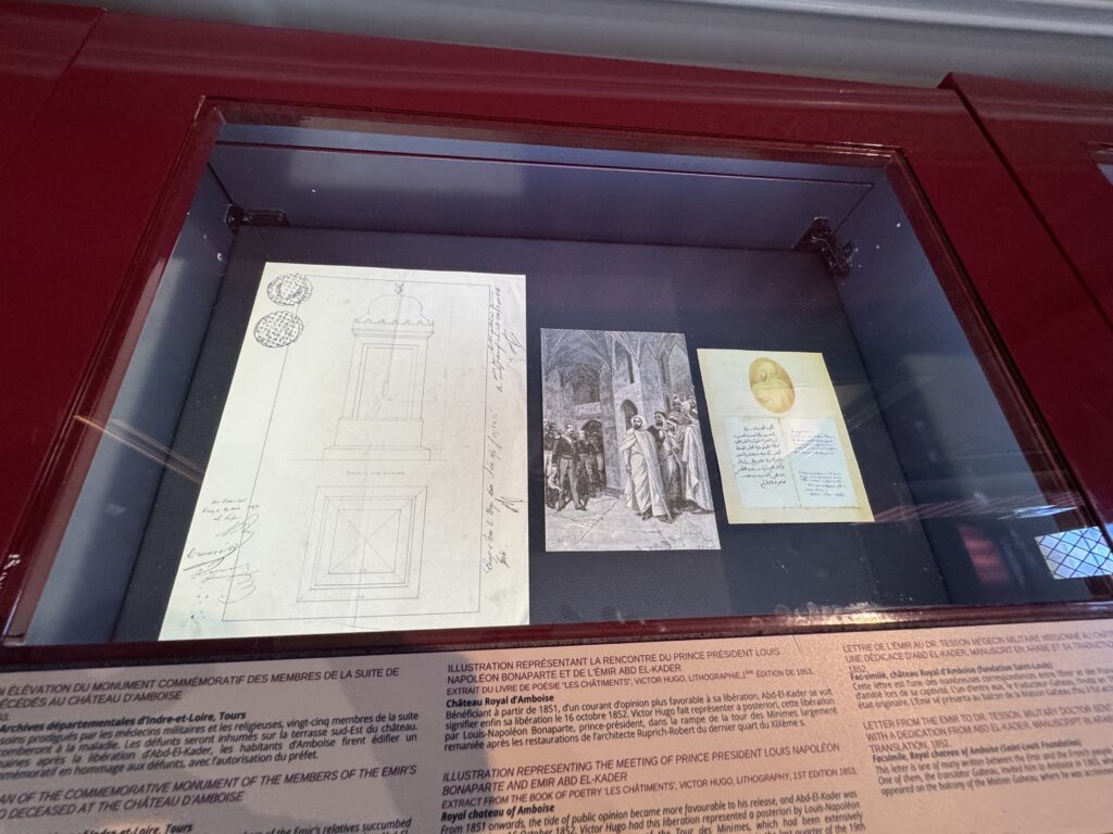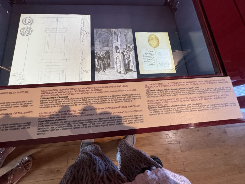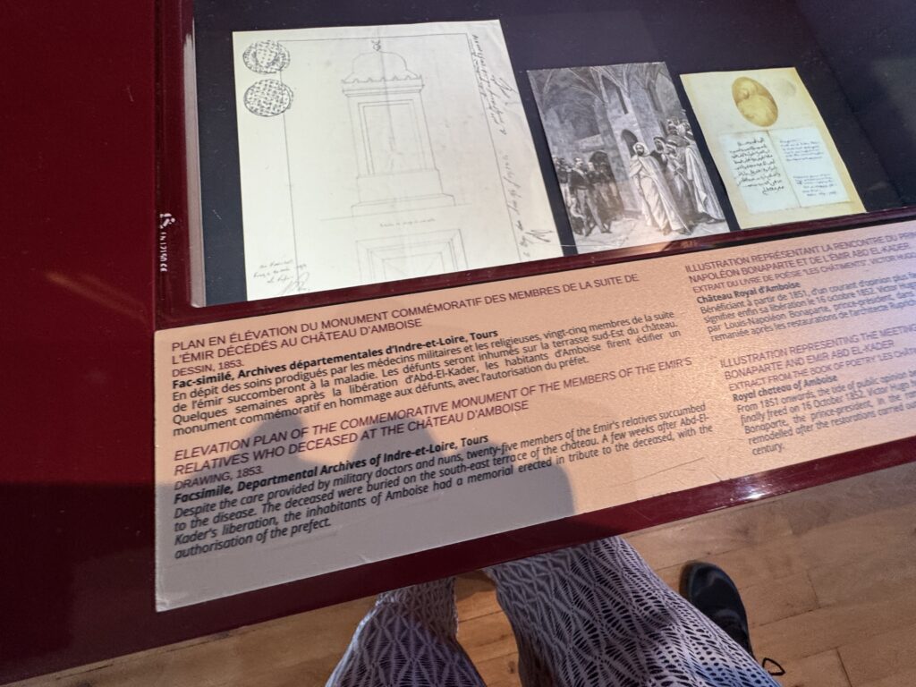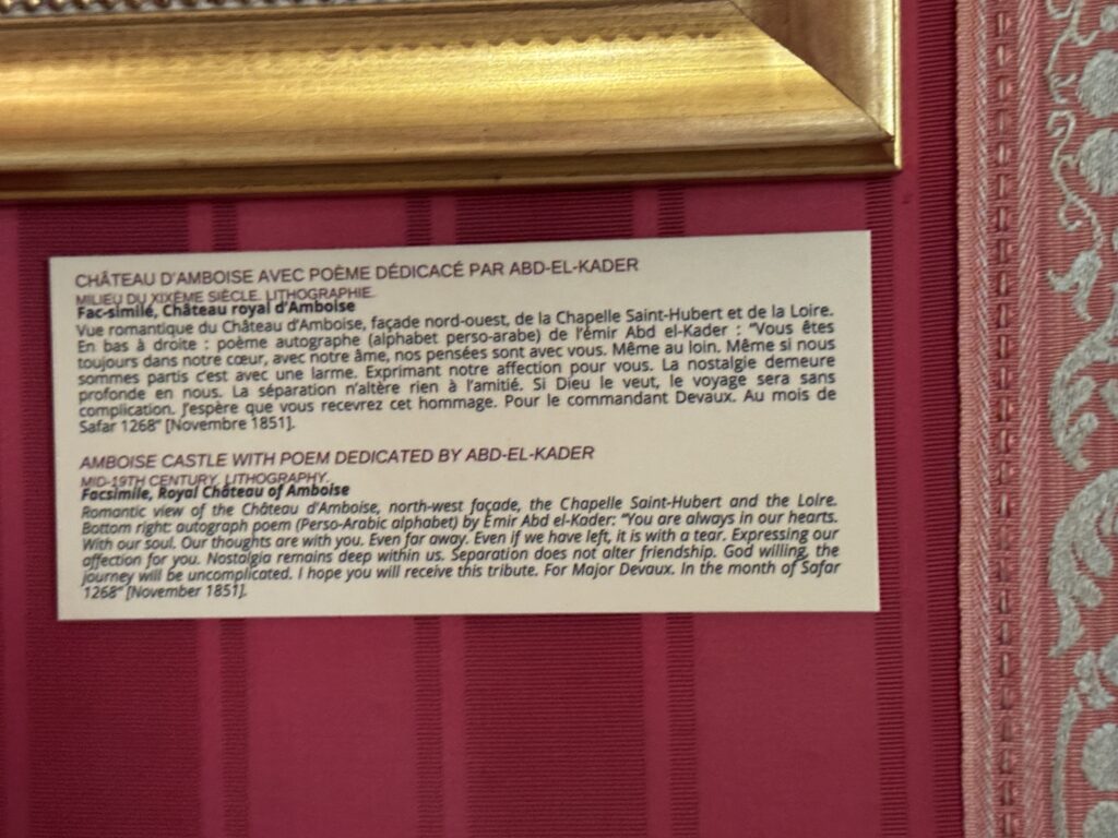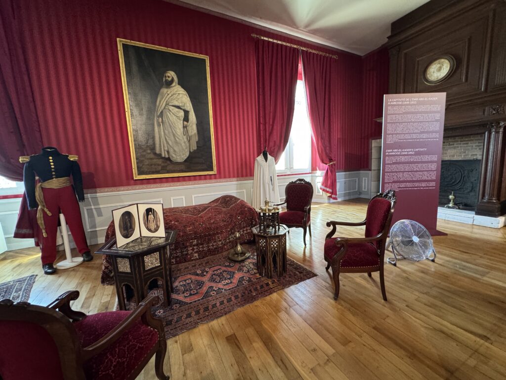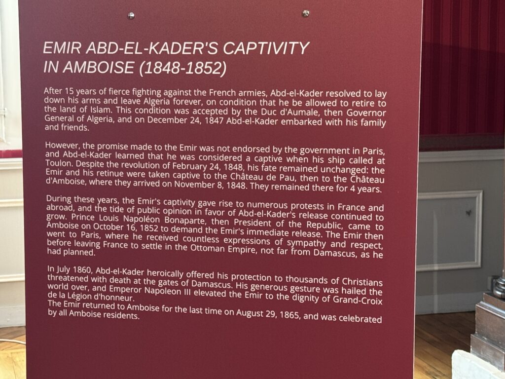 «Пленный эмир Абд аль-Кадир, сопротивлявшийся французской колонизации Алжира, а также его семья и приближенные были переведены в Шато д’ Амбуаз в ноябре 1848 года. Позднее в том же году, в октябре, президент Луи-Наполеон Бонапарт посетил Абд аль-Кадира в Амбуазе, чтобы сообщить ему о своем освобождении»