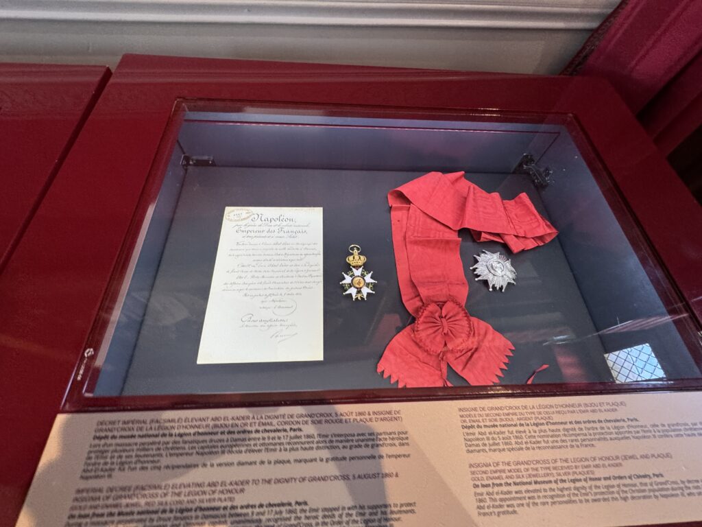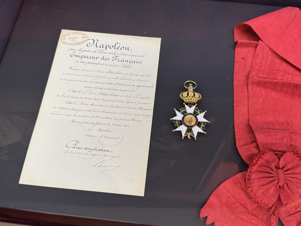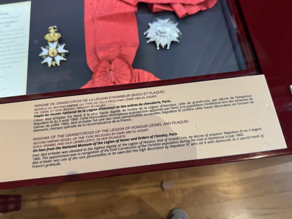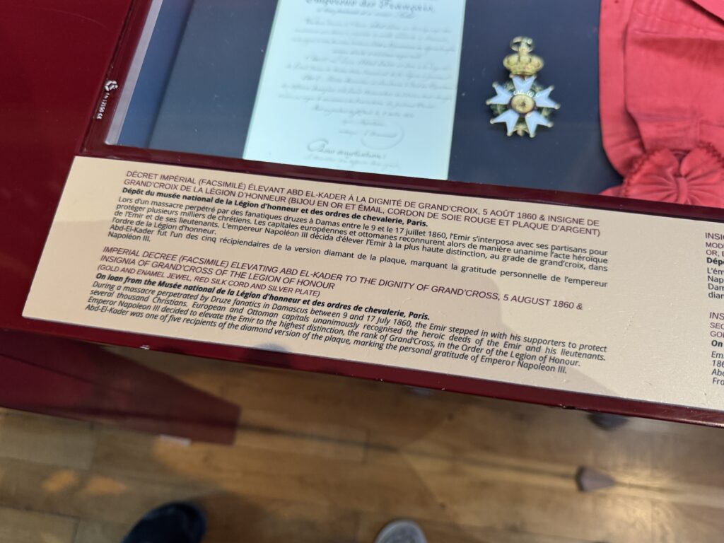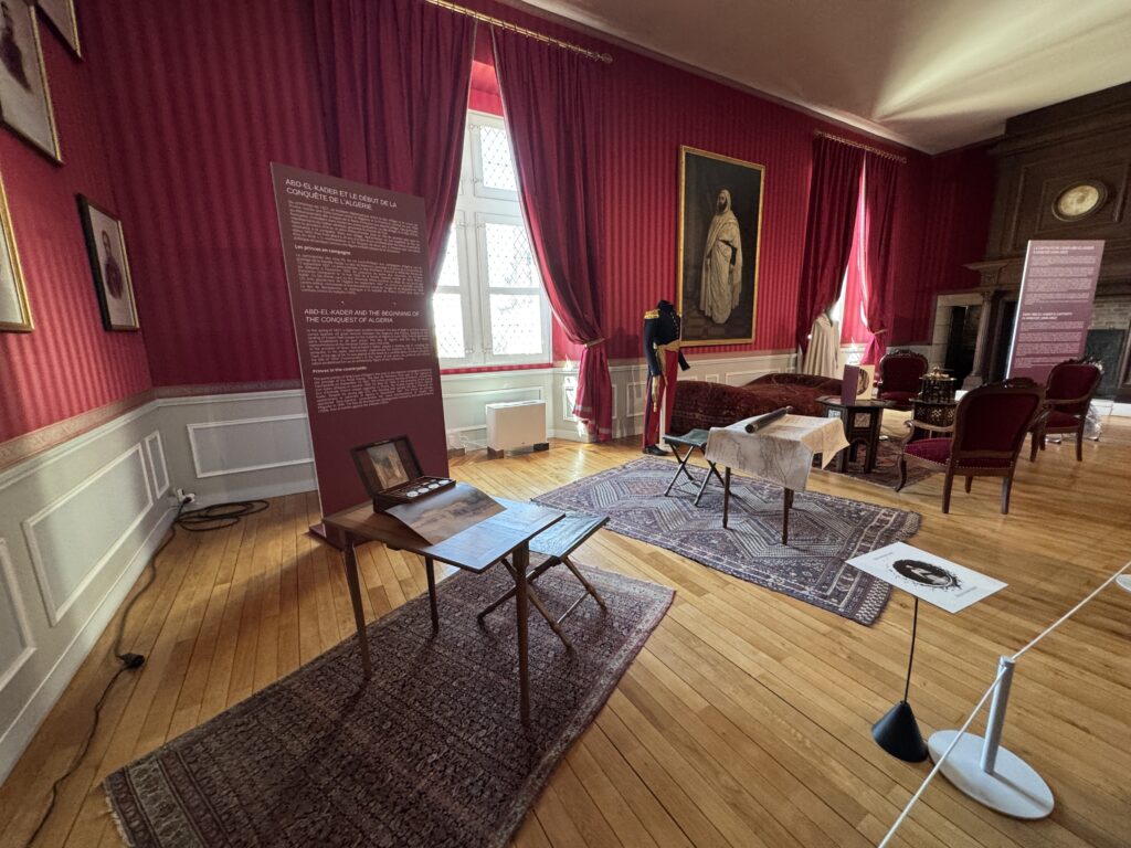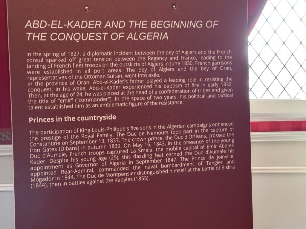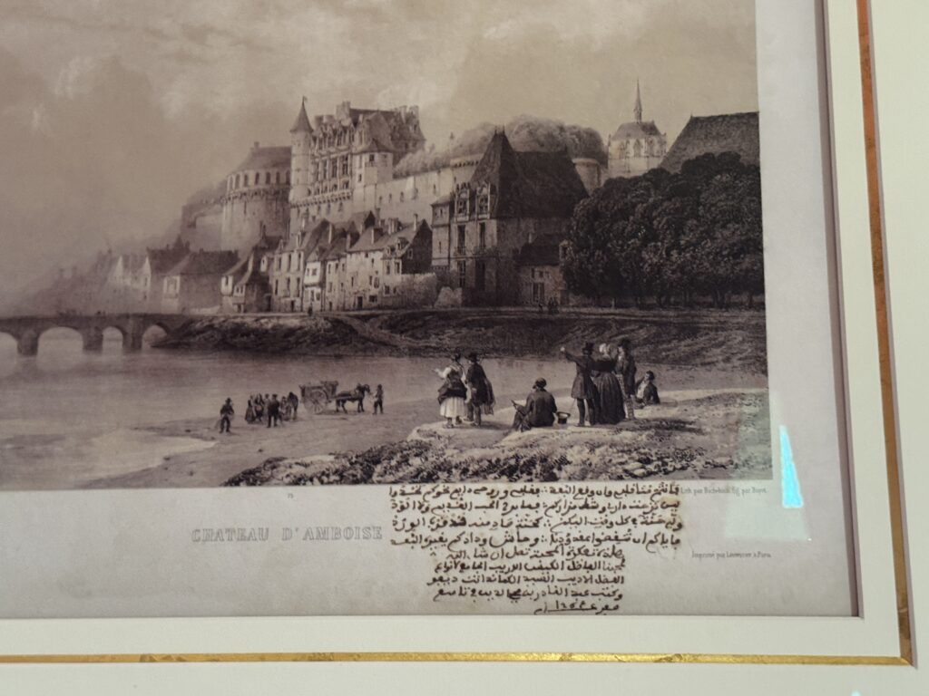 «Пленный эмир Абд аль-Кадир, сопротивлявшийся французской колонизации Алжира, а также его семья и приближенные были переведены в Шато д’ Амбуаз в ноябре 1848 года. Позднее в том же году, в октябре, президент Луи-Наполеон Бонапарт посетил Абд аль-Кадира в Амбуазе, чтобы сообщить ему о своем освобождении»