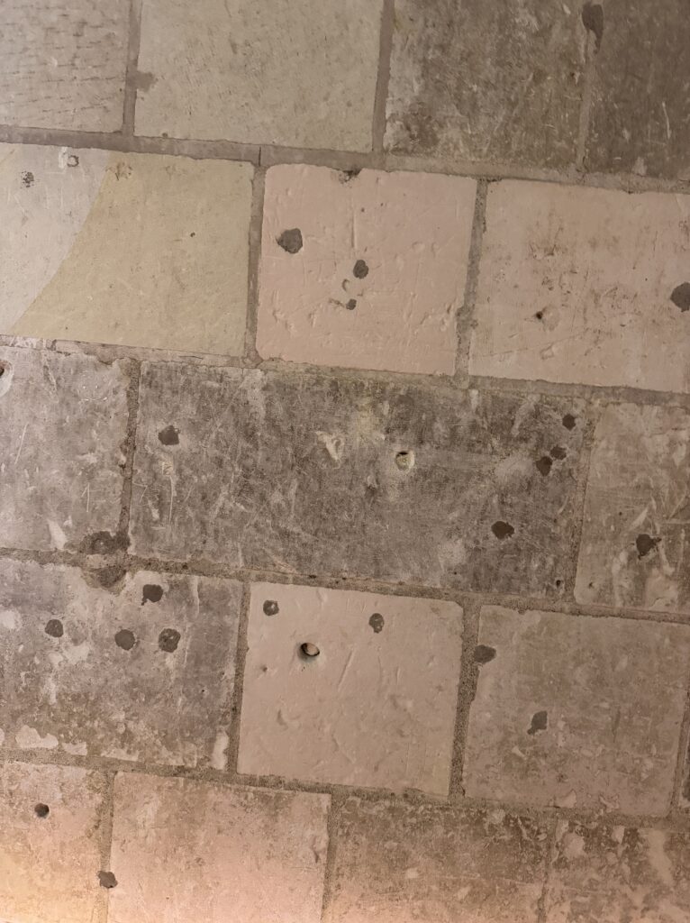 Пол из терракотовых изразцов, украшенных геральдическими лилиями, в духе XV в.