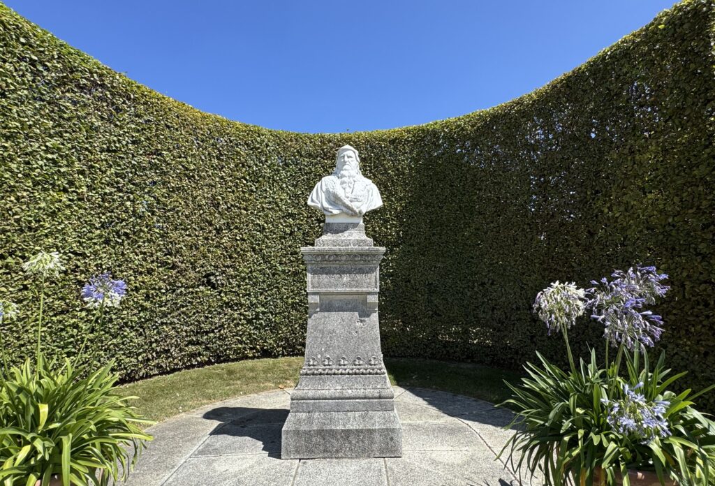 «Памятник Леонардо да Винчи: в нижней части парка высится белый бюст Леонардо да Винчи, установленный на месте коллегиальной церкви Святого Флорентина (романская архитектура, XI век), где он первоначально был похоронен в соответствии с завещанием»
