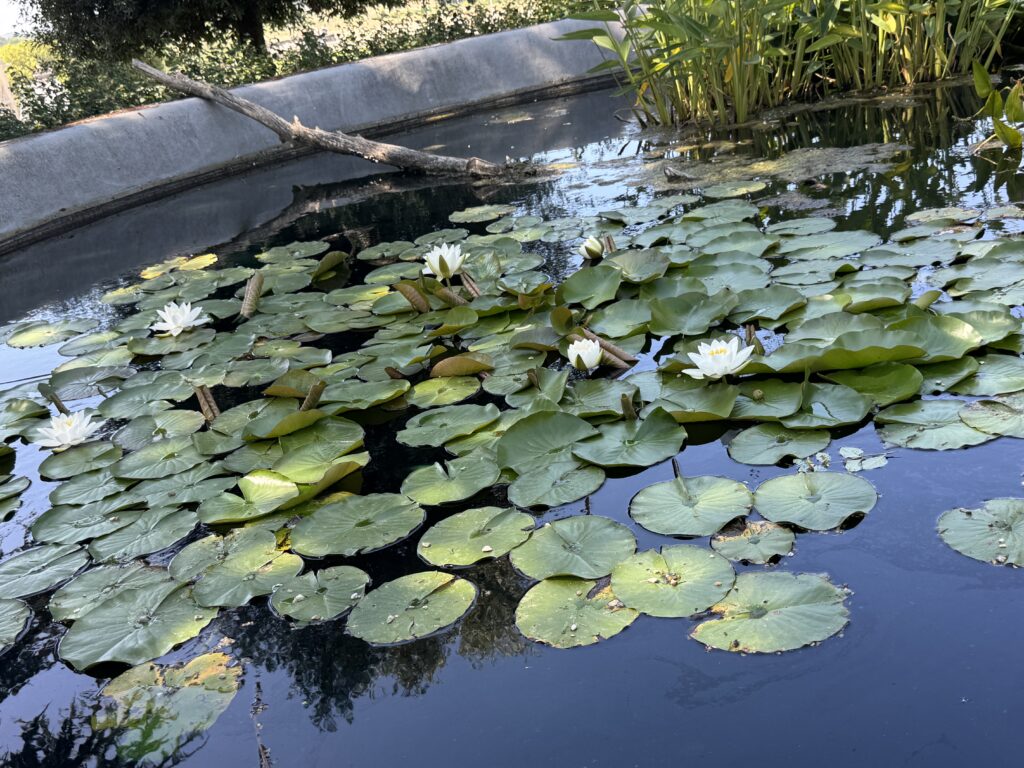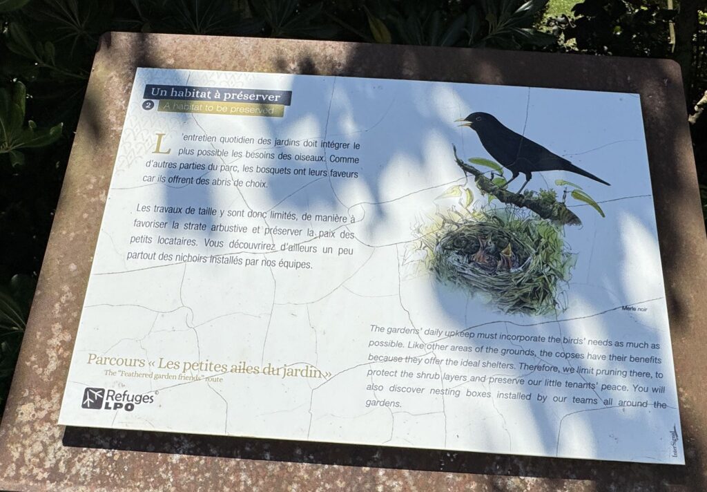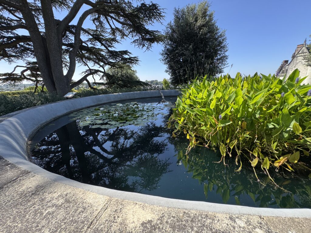 «На террасе, где возвышается ливанский кедр, расположен Восточный сад, разбитый в 2005 г. художником пластиком Рашидом Кораиши в память об умерших в замке Амбуаз членах свиты Абд аль-Кадира. Геометрическое расположение стел нарушено зеленой линией, устремленной в направлении Мекки. Розмарин, жасмин, лавр и кипарисы отсылают к ландшафтам обоих берегов Средиземного моря»