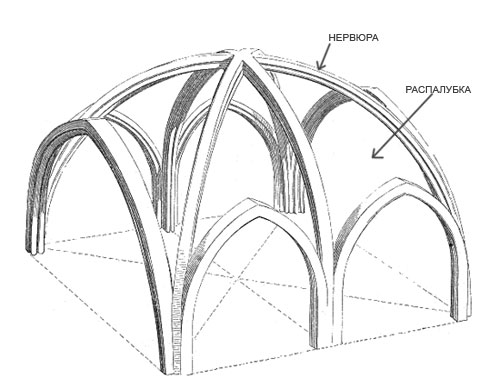 Караульное помещение готического дворца, стрельчатый свод на нервюрах