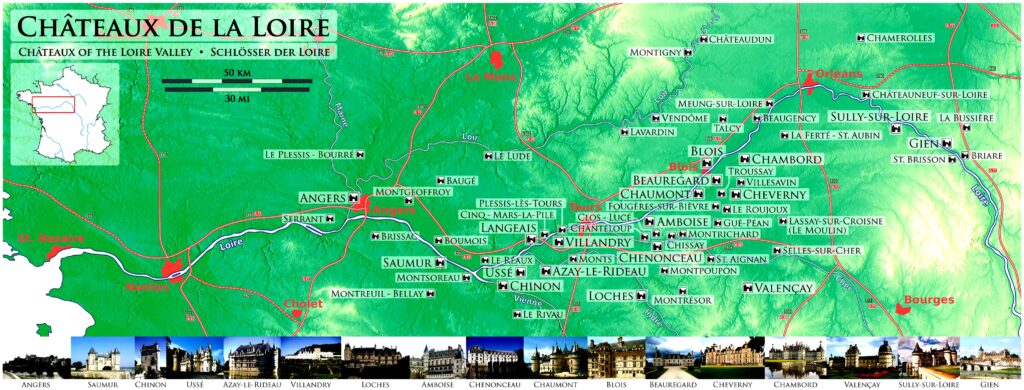 В Амбуазе даже два замка — одноимённый (переполненный королевскими историями) и Кло-Люсе (где провёл детство Франциск I и где поселили Да Винчи).
