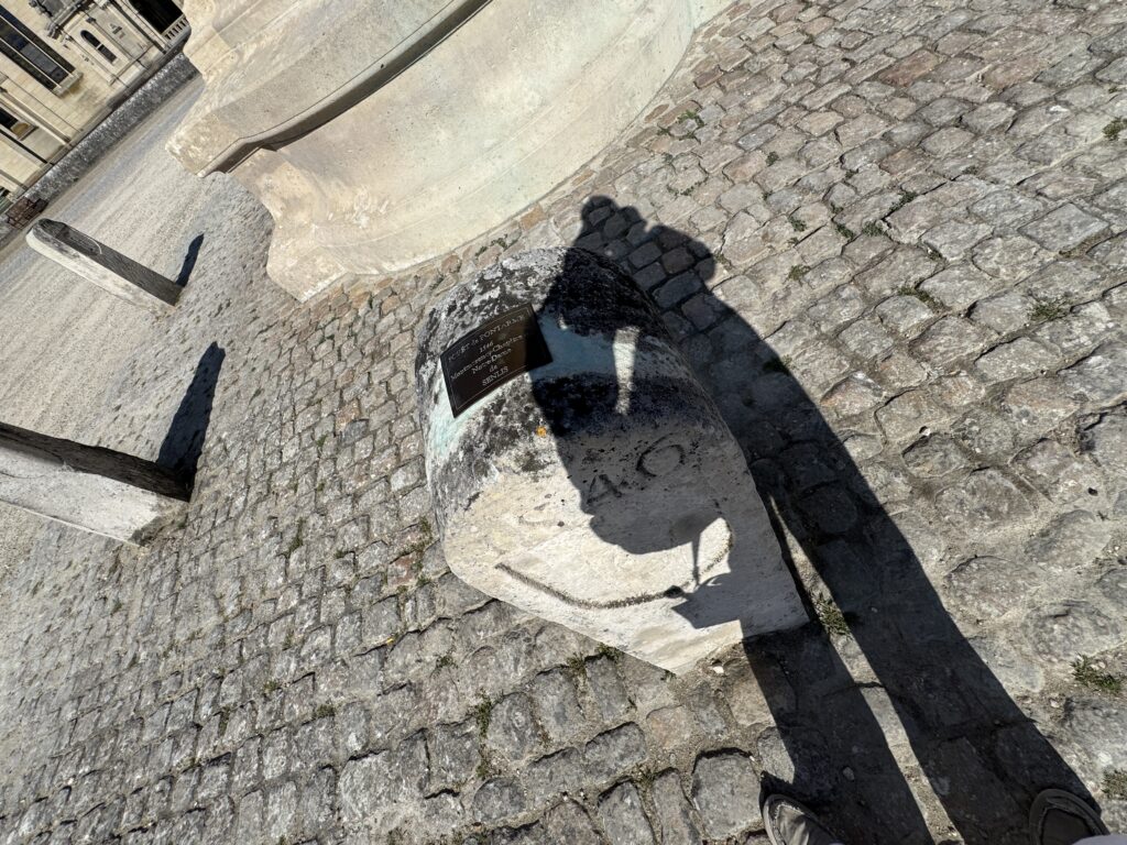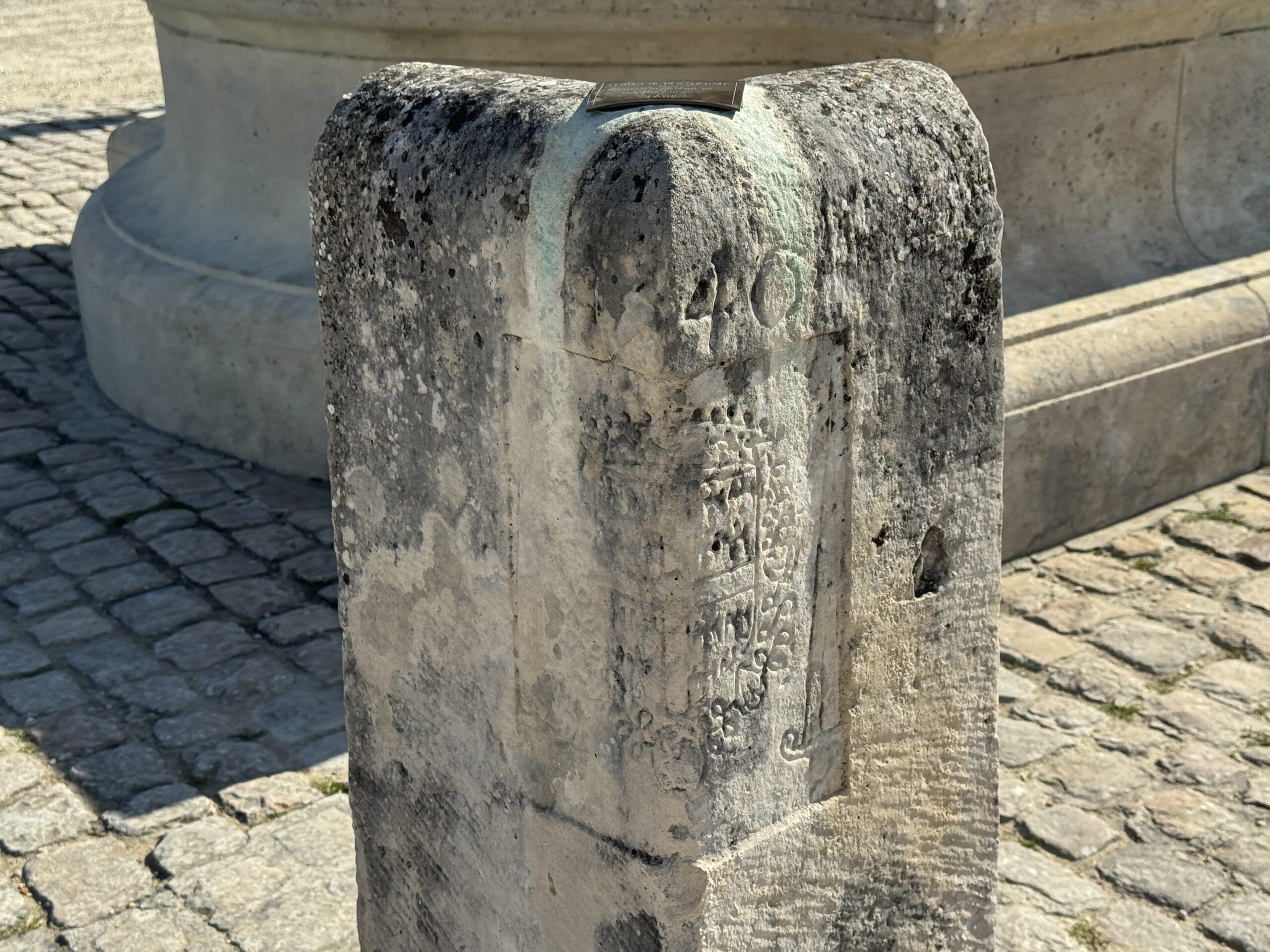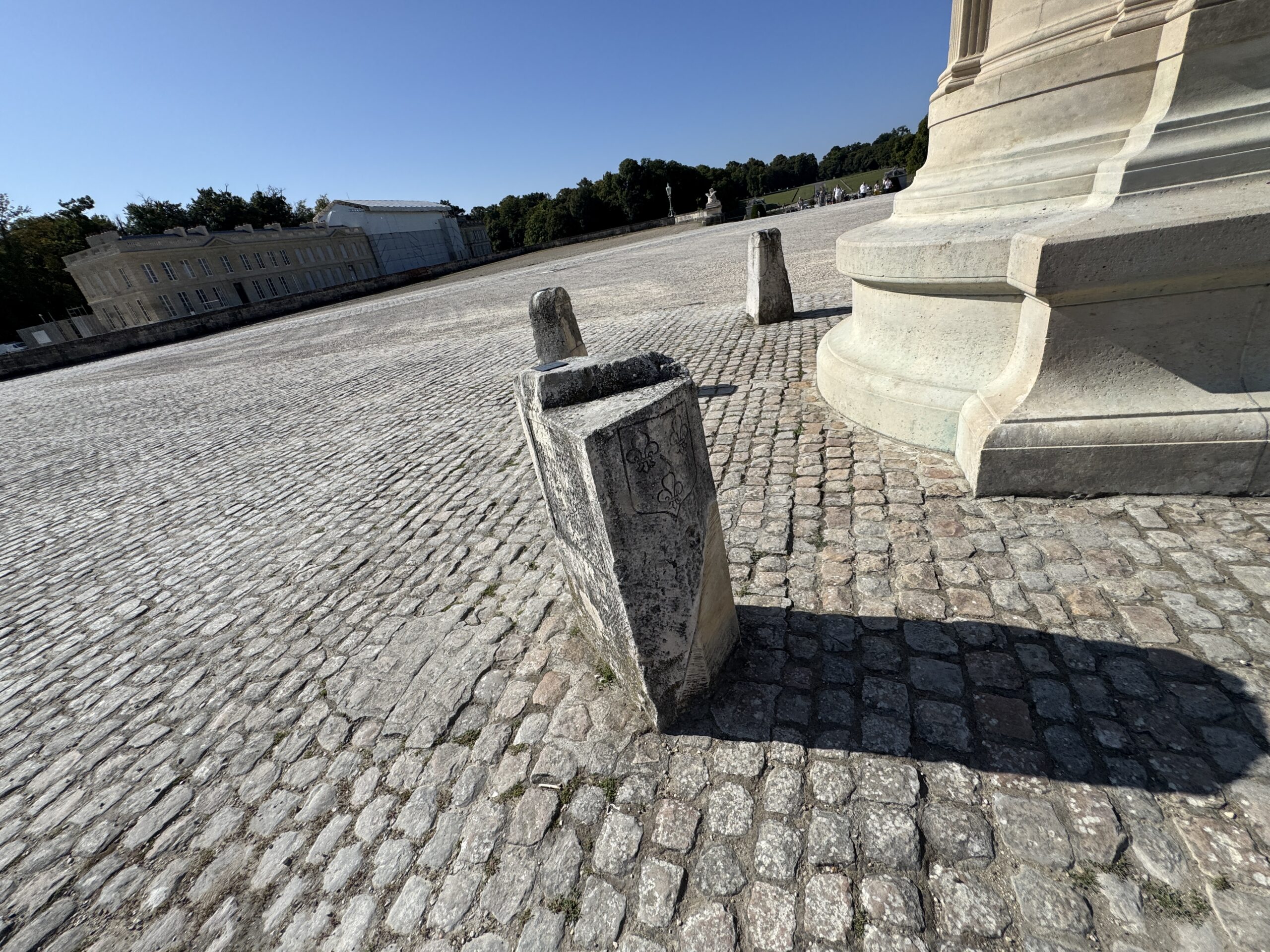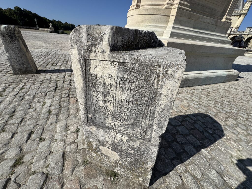 Памятник окружают межевые камни семьи Монморенси с указанием года их установки и гербами.