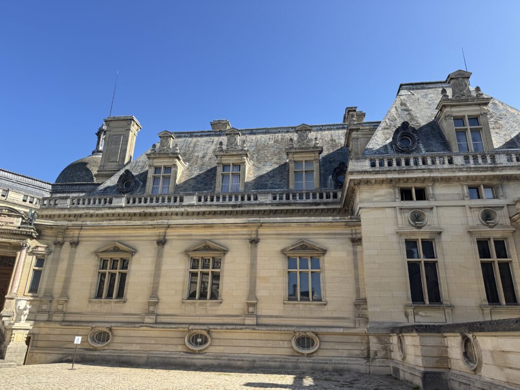 Замок окружен обширными садами, спроектированными в стиле классического французского парка, а также более ранними парками эпохи Возрождения (ии гугла)»