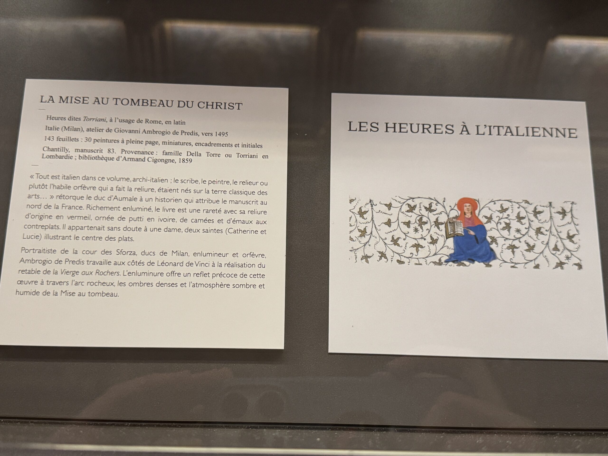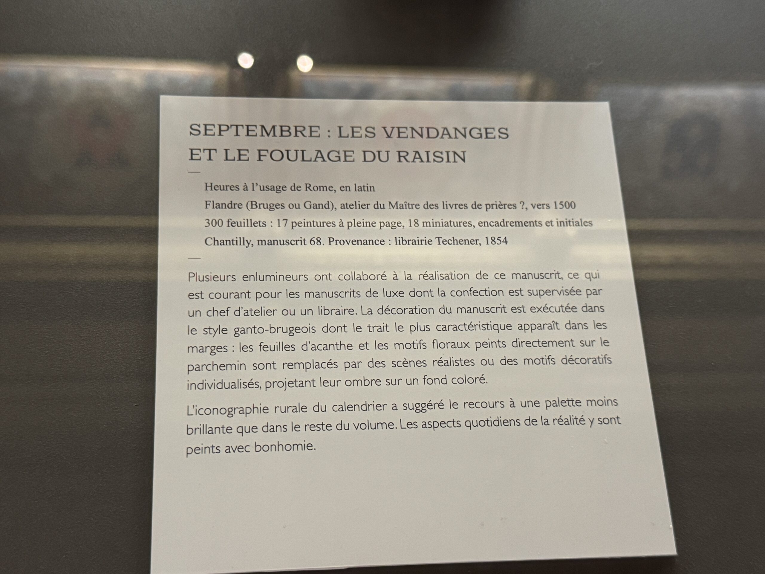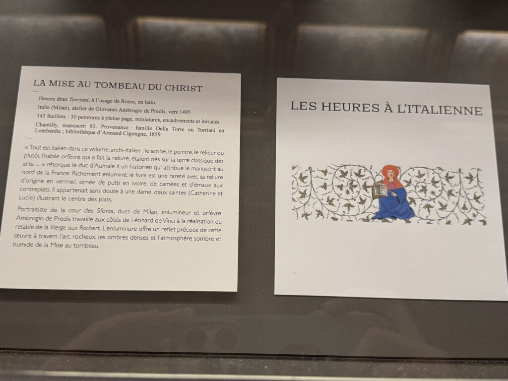К вечеру второго дня мы добрались из Барселоны до Парижа, а утром третьего, 11 августа 2025 года, отправились в Замок Шантийи. Потому что там проходила выставка, посвященная Великолепному часослову герцога Беррийского, важнейшей книге Средневековья.