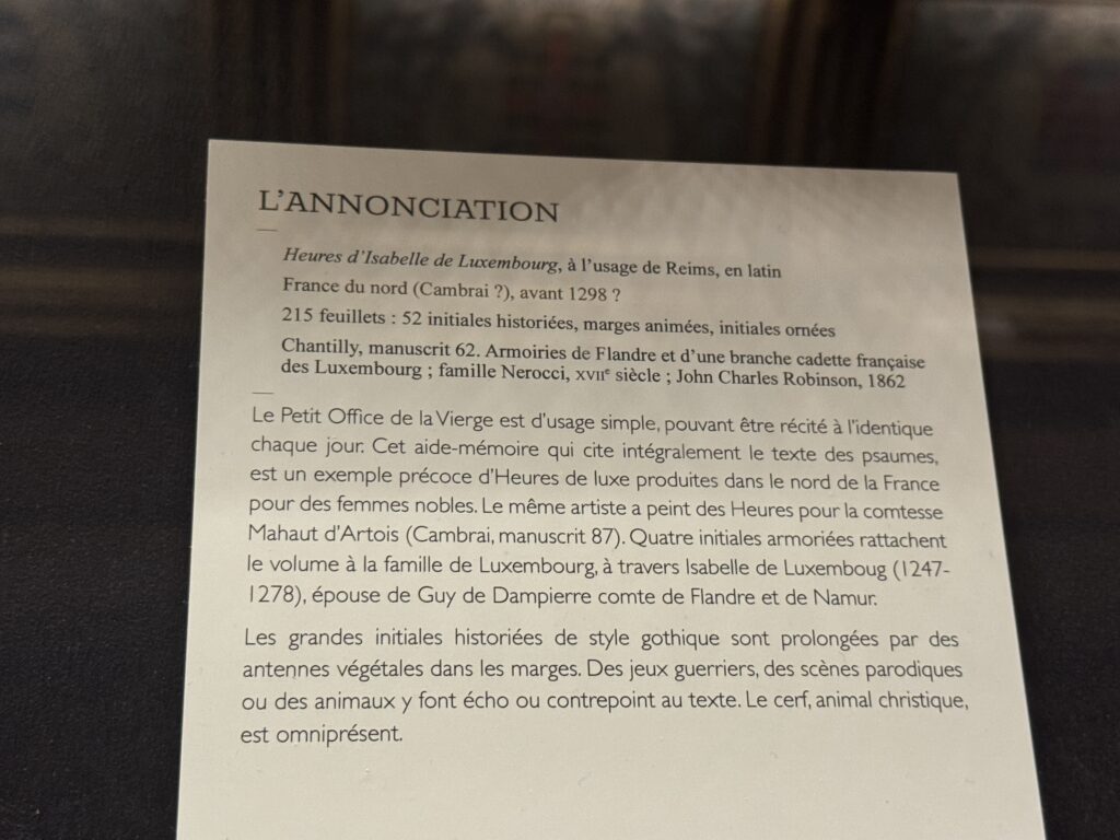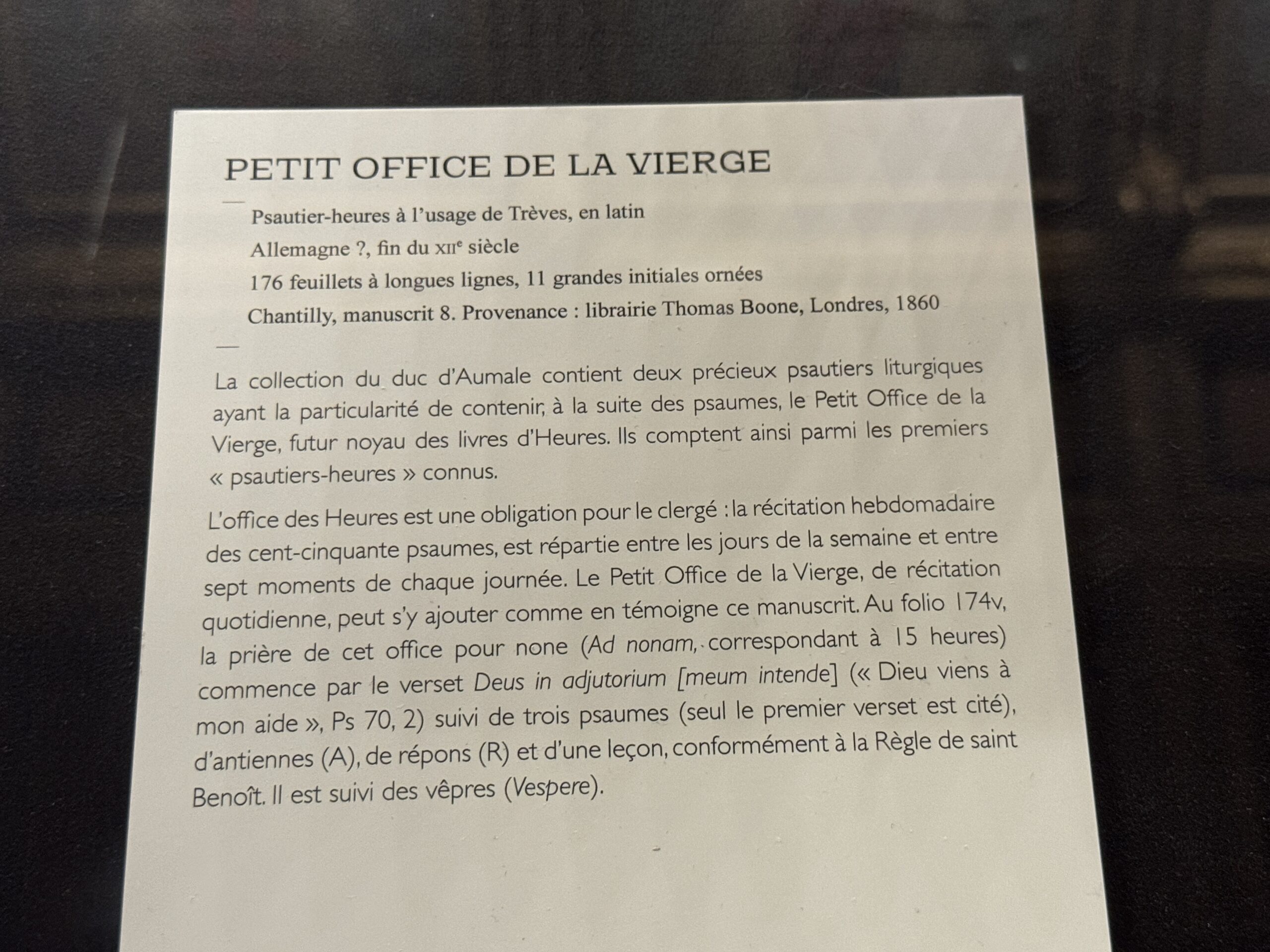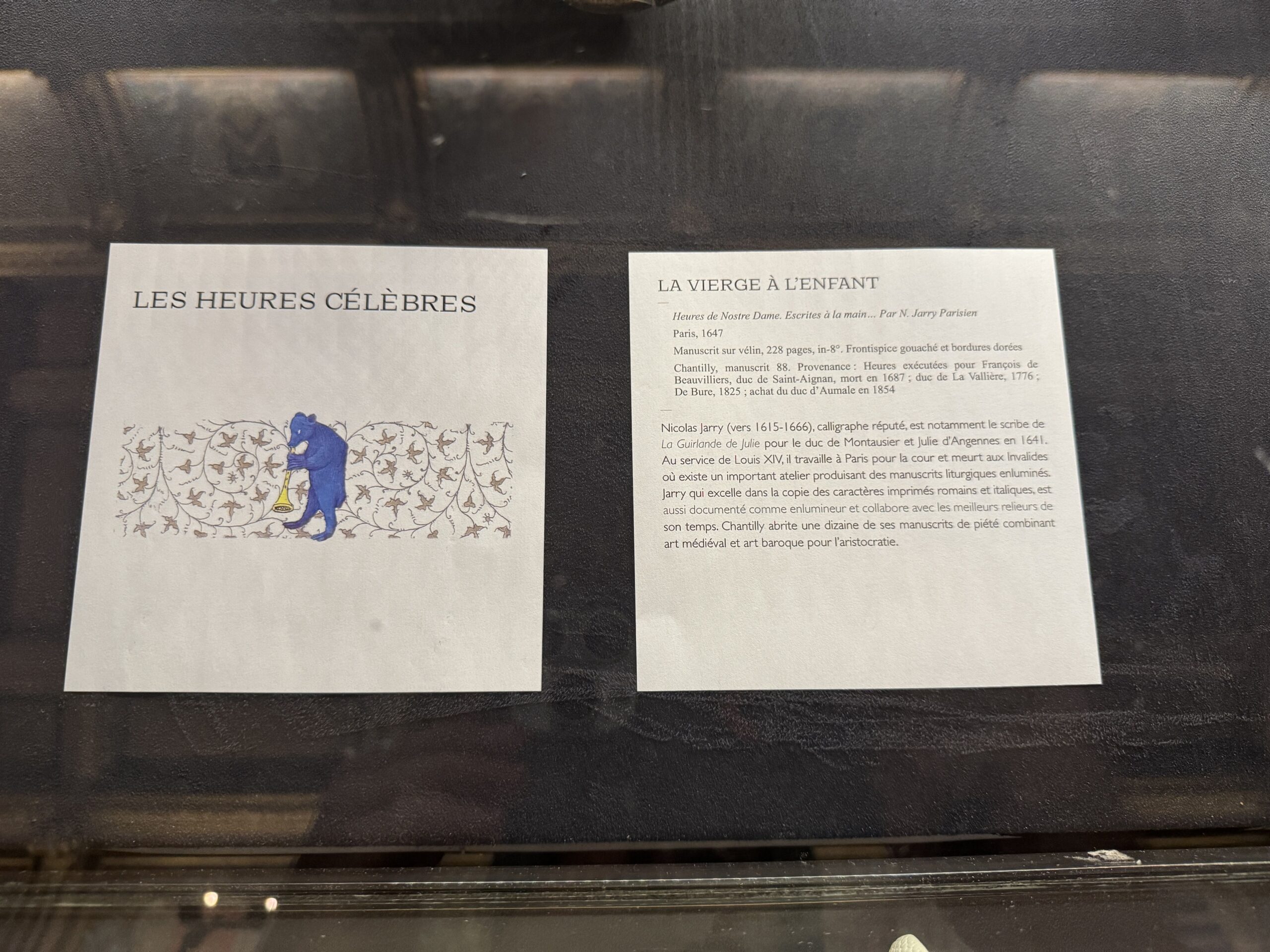 К вечеру второго дня мы добрались из Барселоны до Парижа, а утром третьего, 11 августа 2025 года, отправились в Замок Шантийи. Потому что там проходила выставка, посвященная Великолепному часослову герцога Беррийского, важнейшей книге Средневековья.