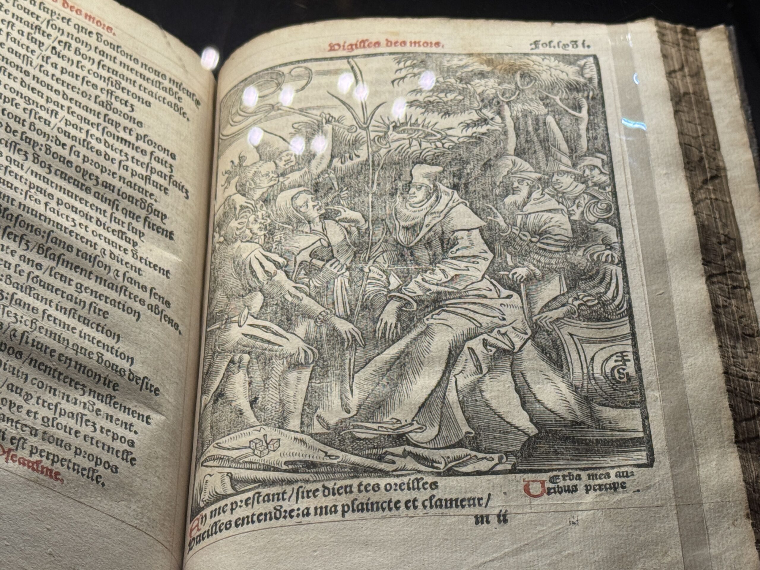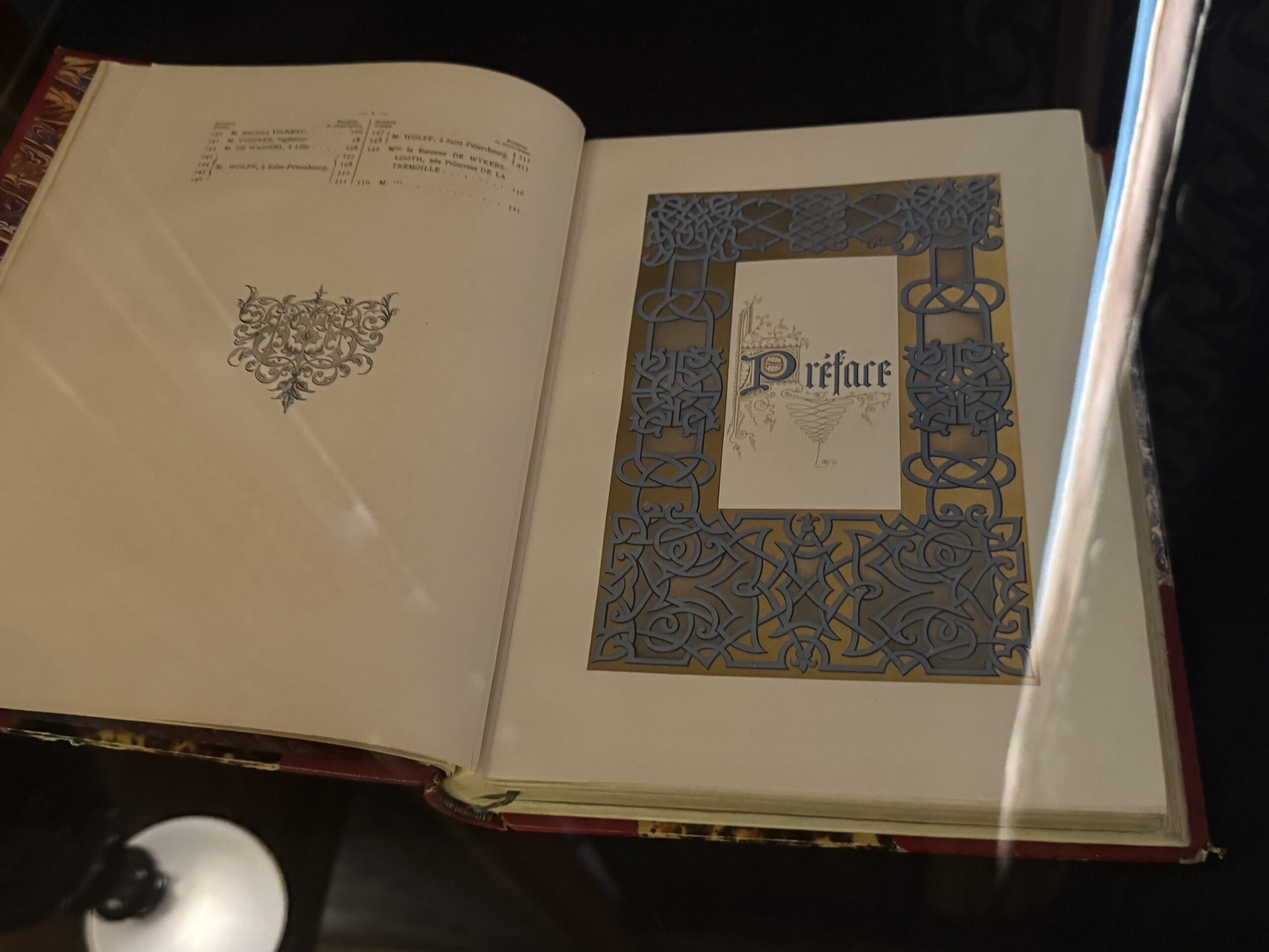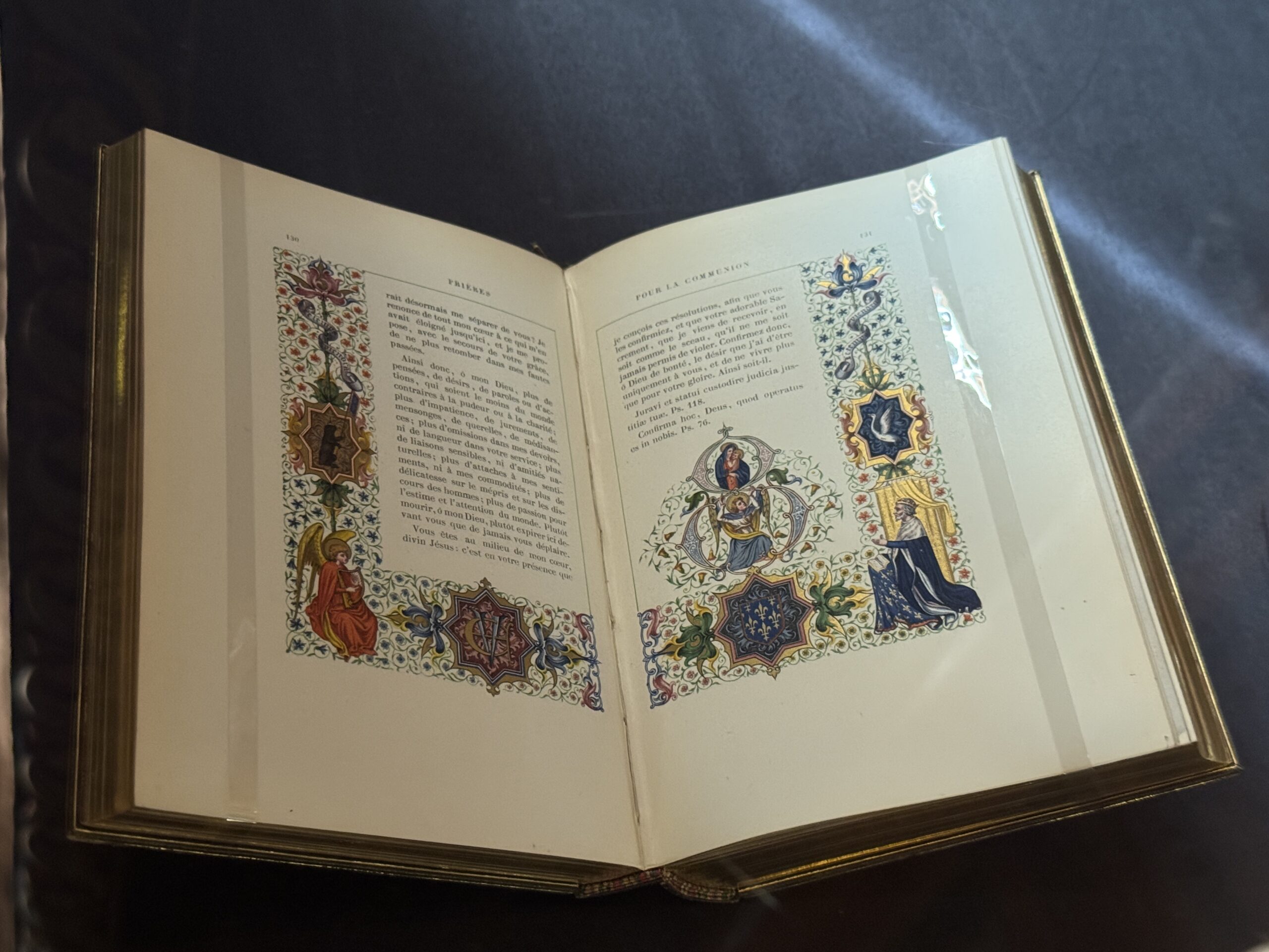 В книжном зале хранятся рукопись и несколько печатных изданий, отражающих новый неоготический стиль, модный в середине XIX века. Леон Кюрмер (1801–1870) специализировался на хромолитографических орнаментах, заимствованных из каролингских и французских рукописей. С ним сотрудничал Ари Шеффер (1794–1858), учитель рисования королевской семьи.