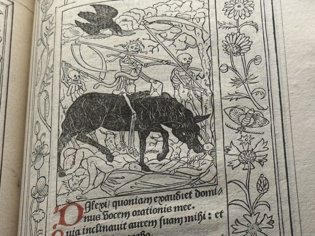 Смерть занимает важное место в Часах. Покаянные псалмы, обычно возвещаемые миниатюрой, напоминающей о покаянии царя Давида или испытаниях Иова, читаются для защиты от греха и избежания адских мук. Служба по усопшим, предваряемая образом, напоминающим о смерти или воскресении Лазаря, читается в надежде сократить время пребывания умершего в огне Чистилища.