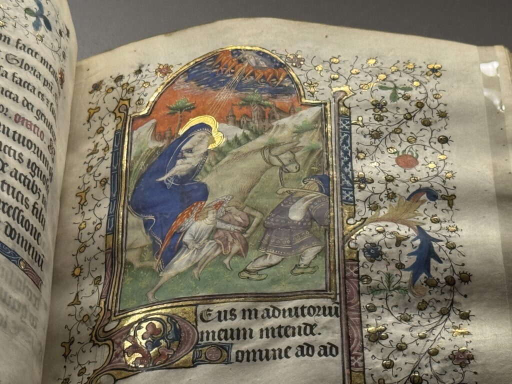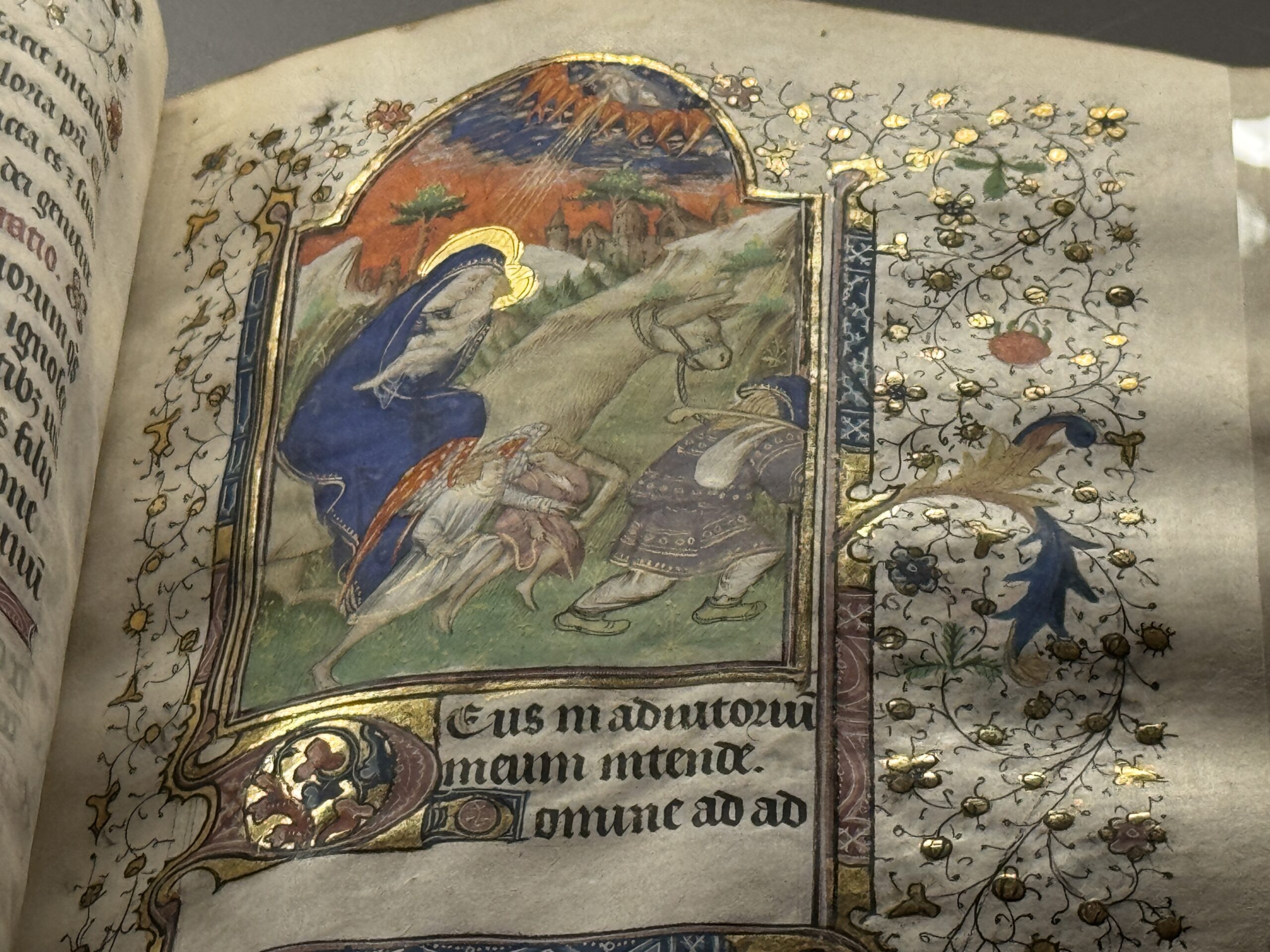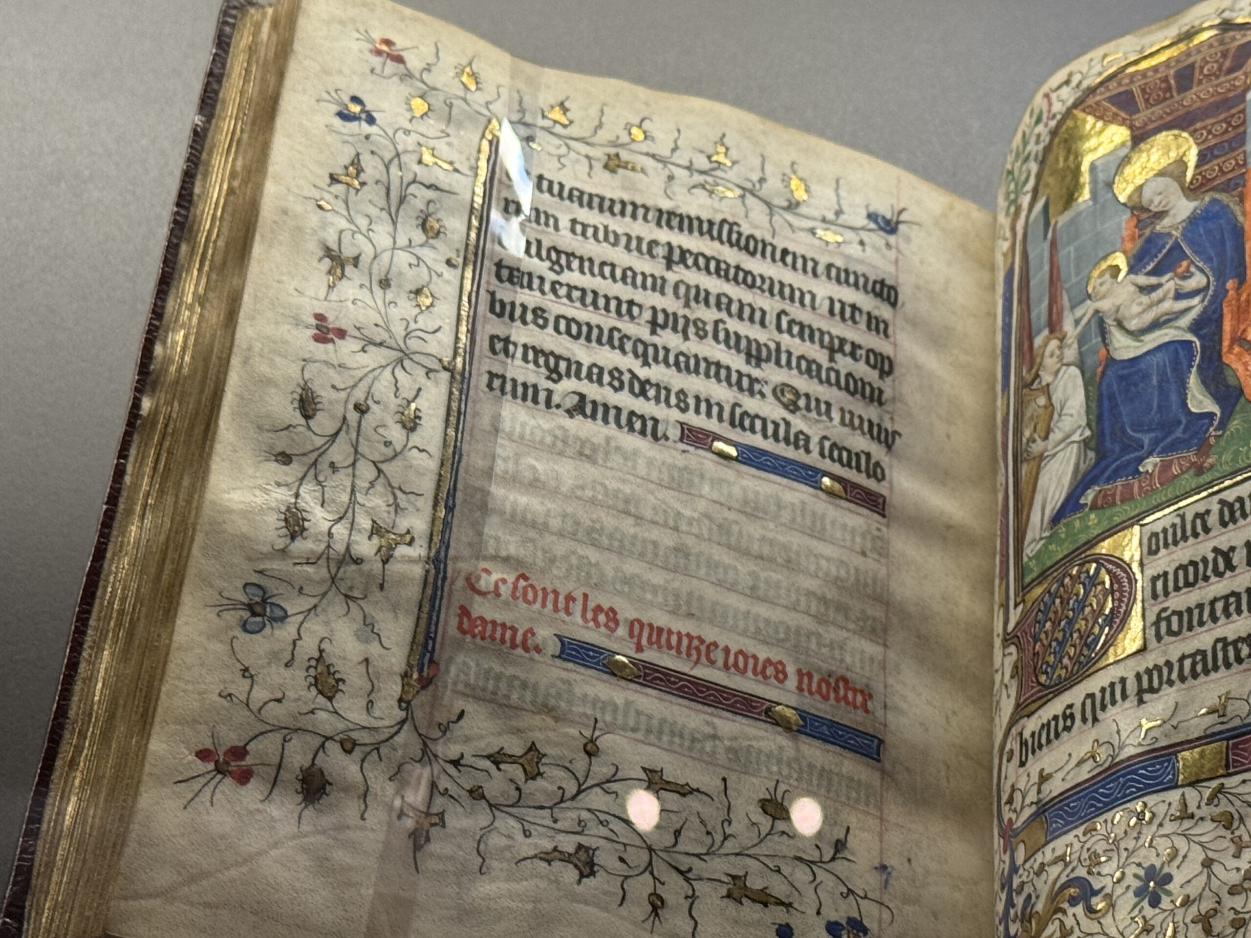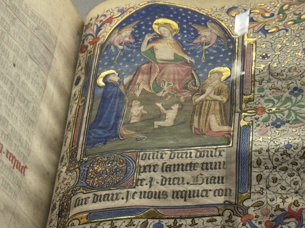 Часослов для использования в Париже на латыни и французском языке Северная Франция (Париж?), около 1430 года. Иллюстрировано мастером Мюнхенской Золотой Легенды. 96 листов: 6 больших миниатюр, рамки, инициалы, окончания строк Шантильи, рукопись 70. Происхождение: от Филиппа де Бетюна (1565–1649); Герцог Сен-Эньян, 1776 г.; настоятель Ротелина; Книжный магазин Башлен, 1866 год.