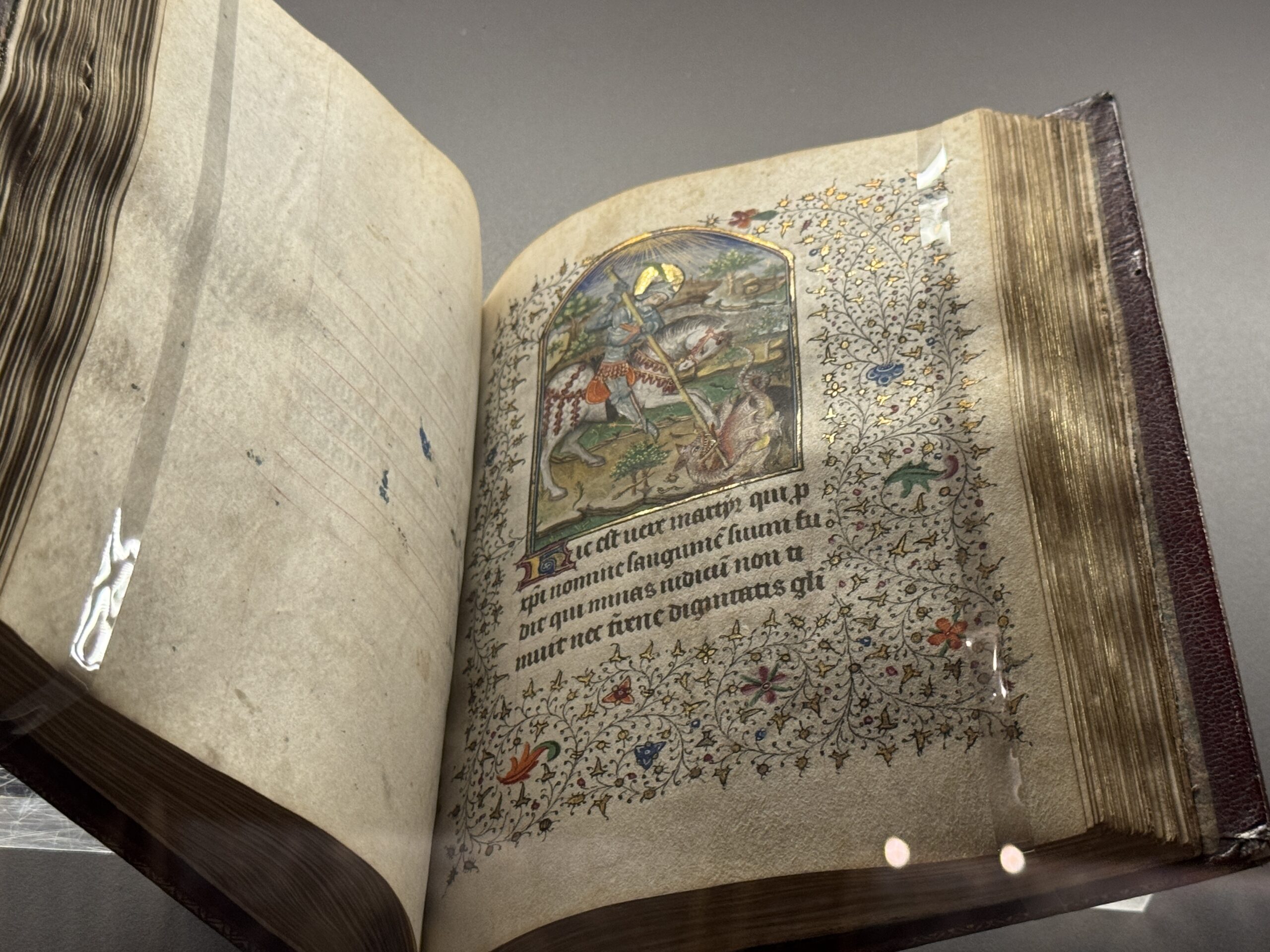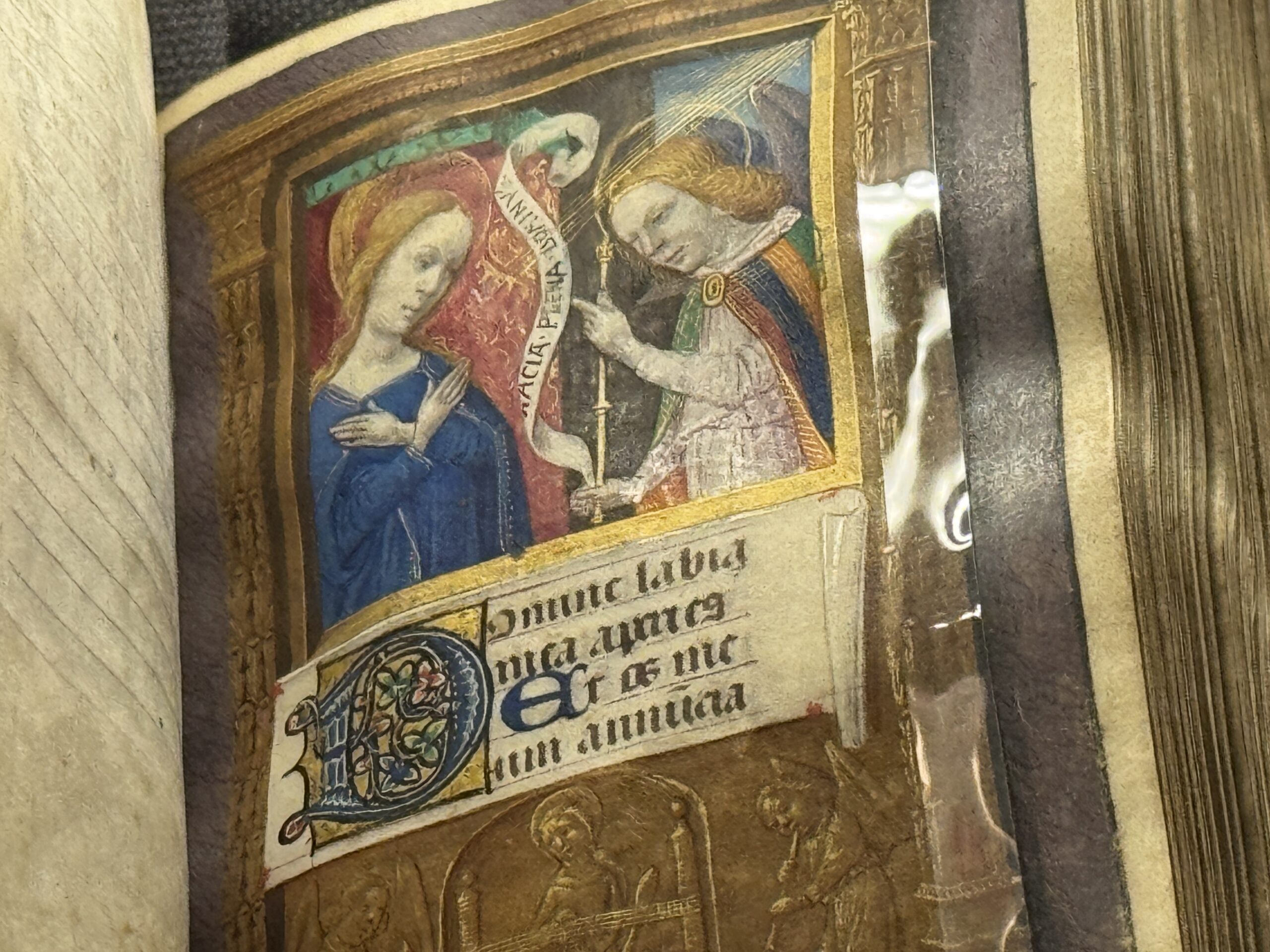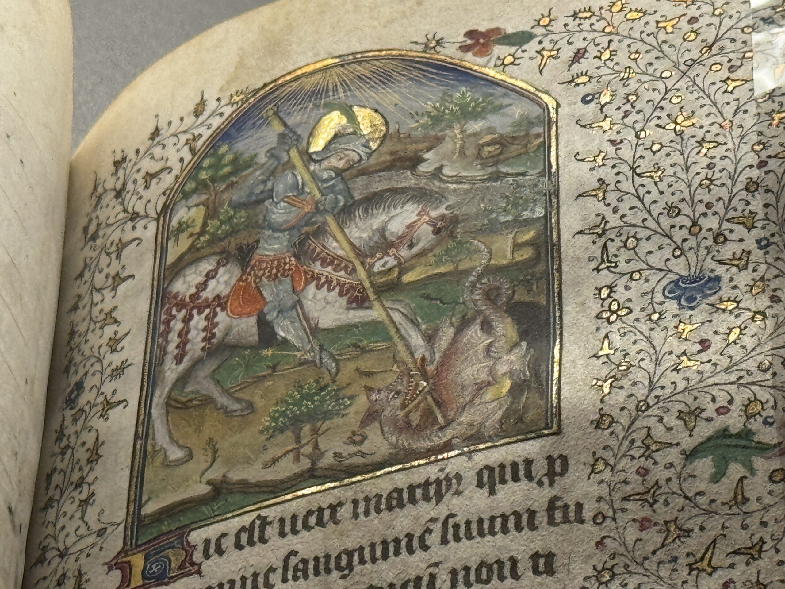 Часослов для использования в Париже на латыни и французском языке Северная Франция (Париж?), около 1430 года. Иллюстрировано мастером Мюнхенской Золотой Легенды. 96 листов: 6 больших миниатюр, рамки, инициалы, окончания строк Шантильи, рукопись 70. Происхождение: от Филиппа де Бетюна (1565–1649); Герцог Сен-Эньян, 1776 г.; настоятель Ротелина; Книжный магазин Башлен, 1866 год.
