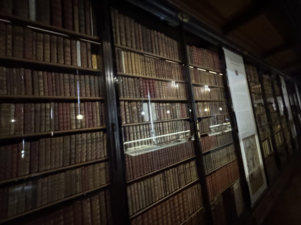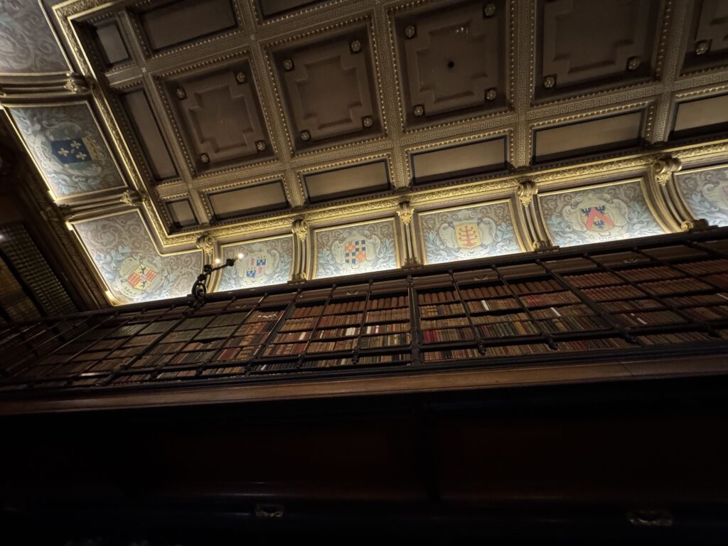 Функциональная планировка типична для библиотек того времени. Книги, сгруппированны по формату, интеллектуальной принадлежности и периоду переплёта.