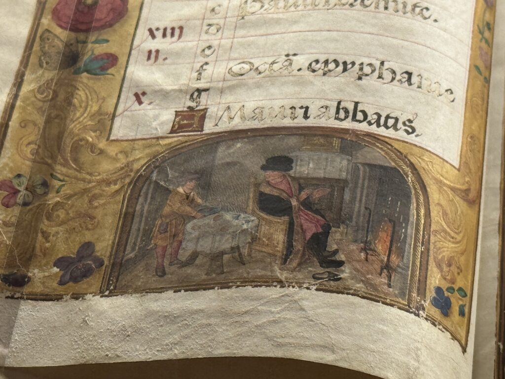На страницах 6v–7 декабрьский календарь сменяется циклом изображений из жизни Христа, начиная с Рождества. Здесь мы видим новое место повествовательных образов в богослужебных книгах, предназначенных для женщин.