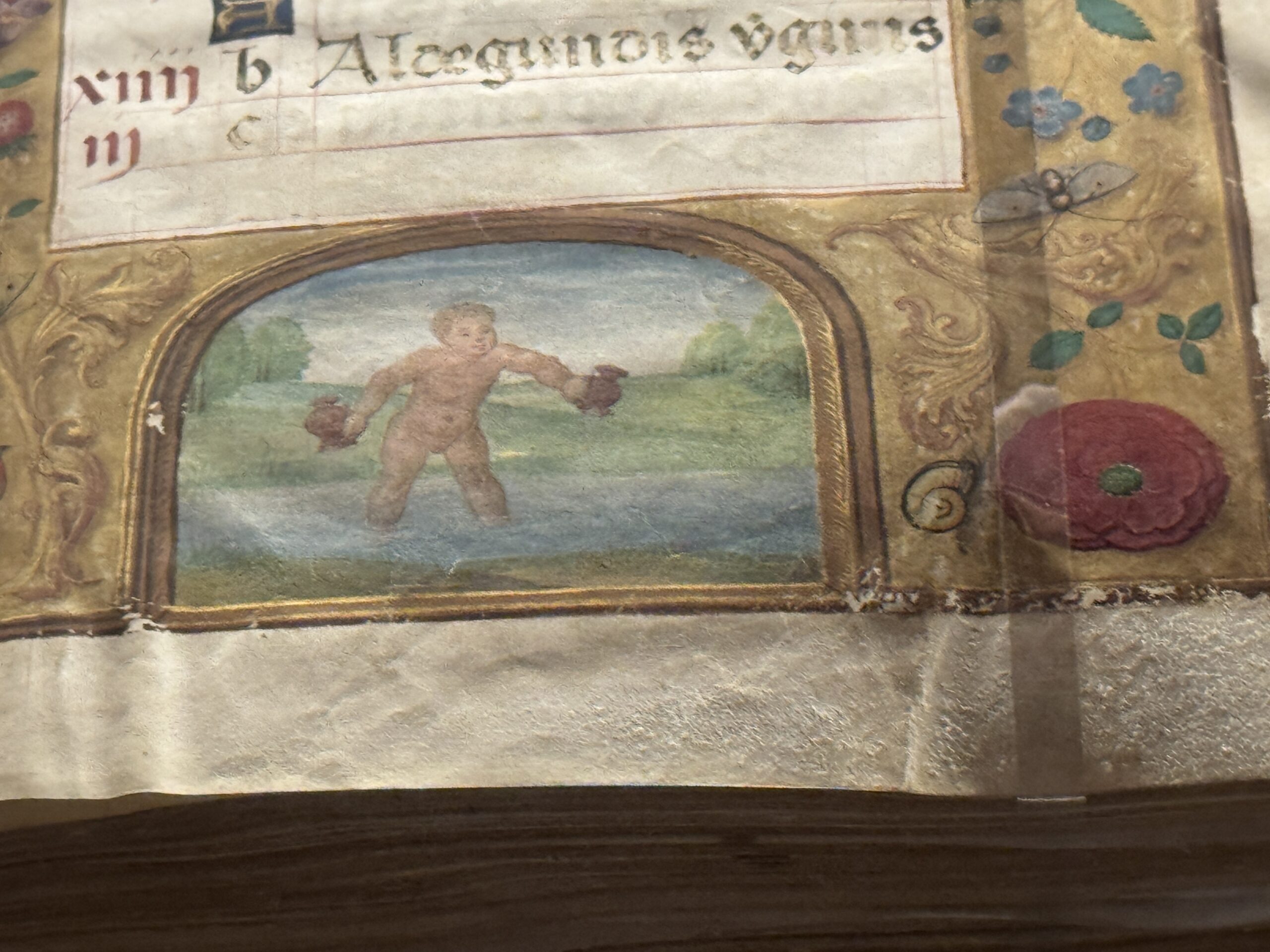 Часослов для Рима, на латыни Фландрия (Брюгге или Гент), мастерская мастера молитвенников?, около 1500 г. 300 листов: 17 полностраничных картин, 18 миниатюр, рамок и инициалов Шантильи, рукопись 68. Происхождение: книжный магазин Теченер, 1854 г.