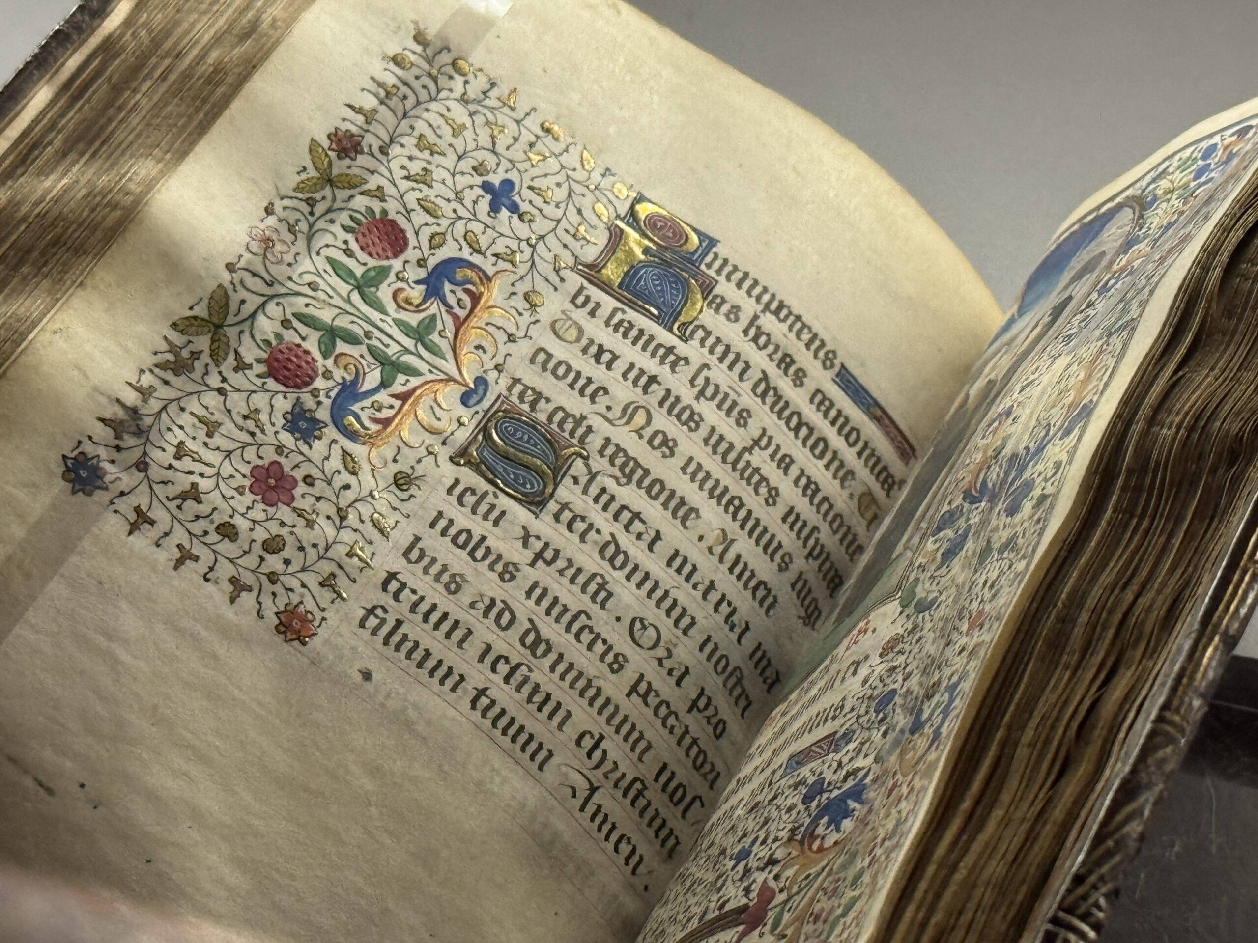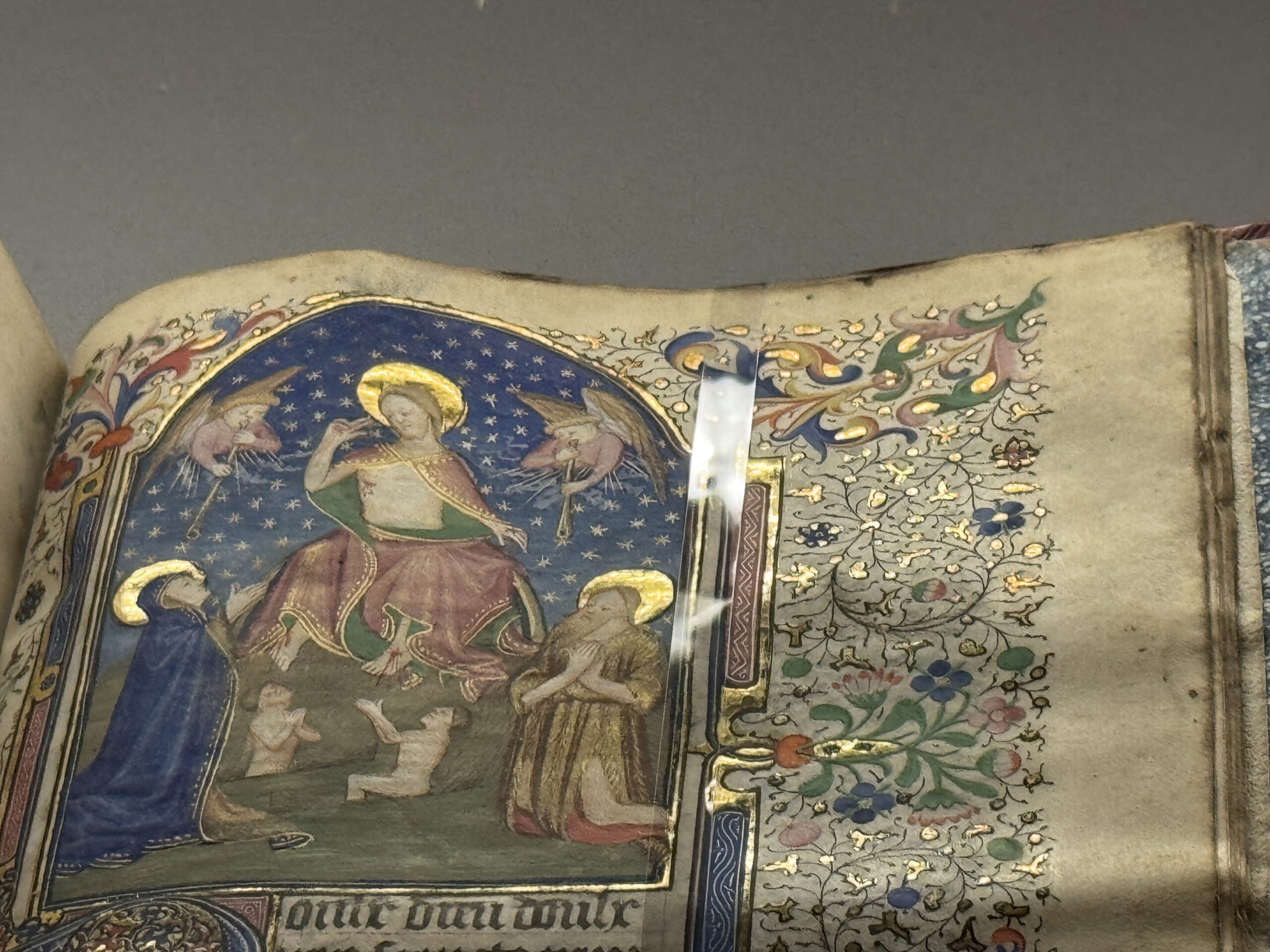 Часослов Бетюна, для использования в Риме, на латыни Северная Франция (Париж), мастер Hoo, около 1430-1435 гг. 151 лист: 21 миниатюрная рамка, инициалы, окончания строк Шантильи, рукопись 69. Происхождение: переплёт с гербом Филиппа де Бетюна (1565–1649); книжный магазин Башлен, 1866 г.