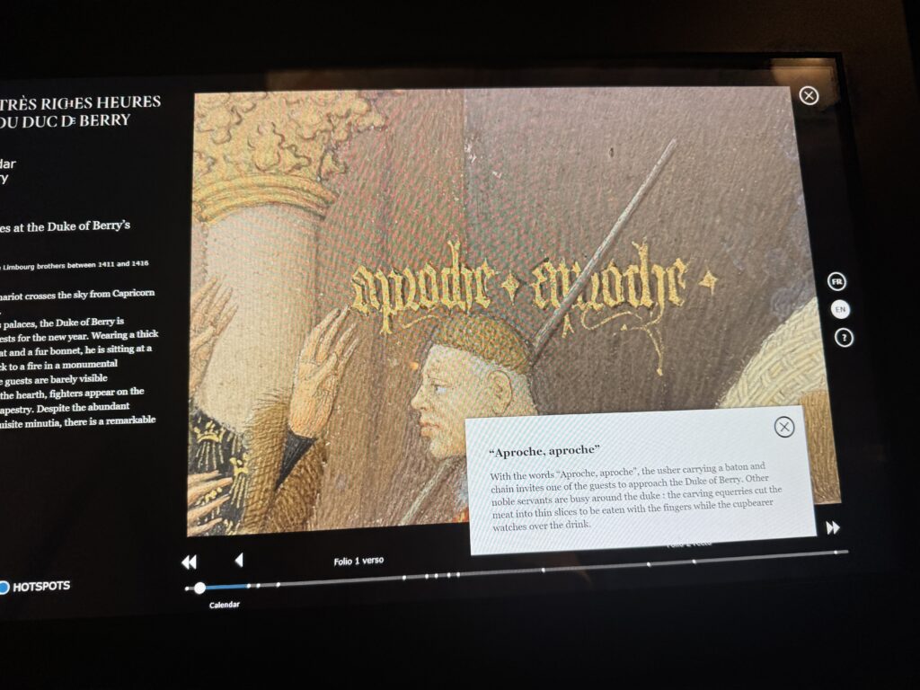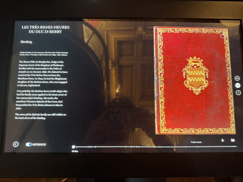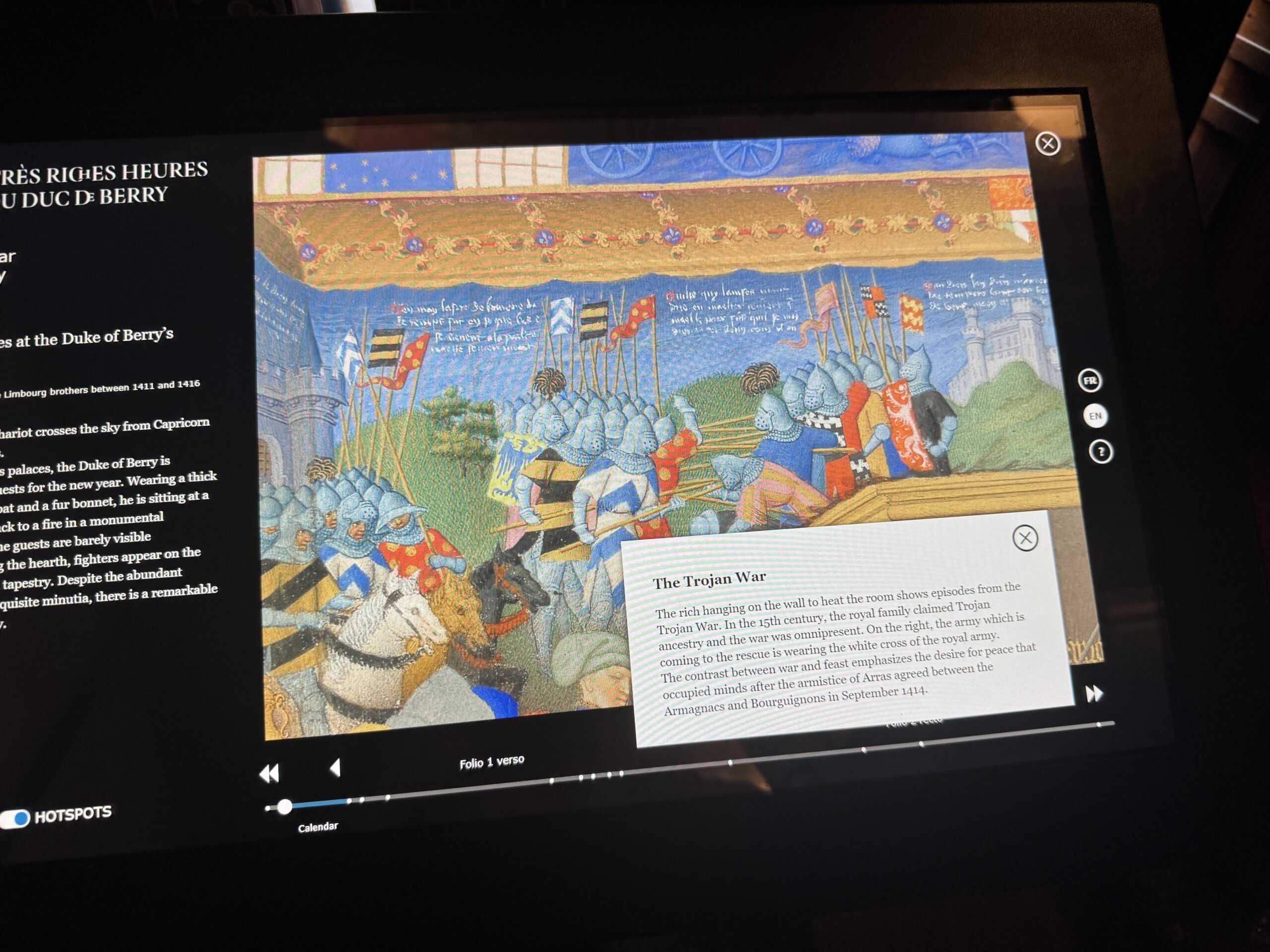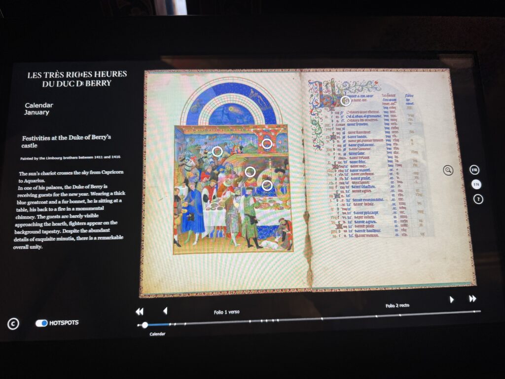 Жемчужина этой коллекции — «Великолепный часослов герцога Беррийского» — представлена в виде факсимиле и в цифровом виде.»