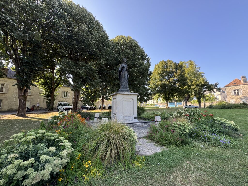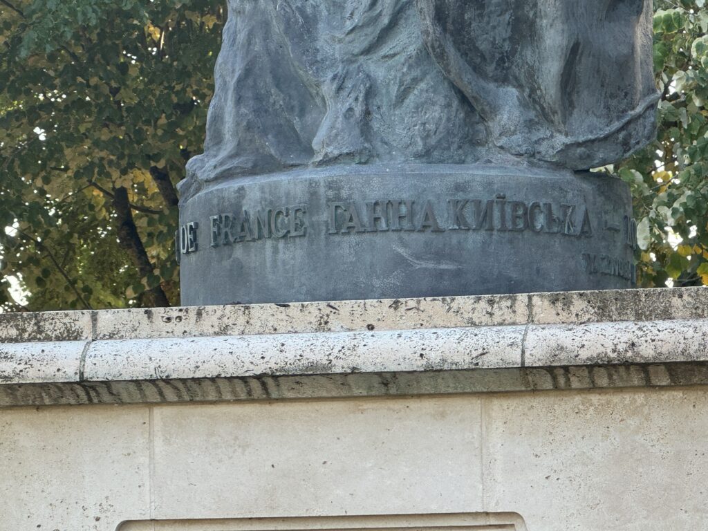 Возвращаясь домой после изучения Шантийи — в конце треьего дня нашего путешествия, 11 августа 2025 года — мы заехали к памятнику Анны Киевской в Санлис — Statue d’Anne de Kiev (Pl. des Arènes, 60300 Senlis)