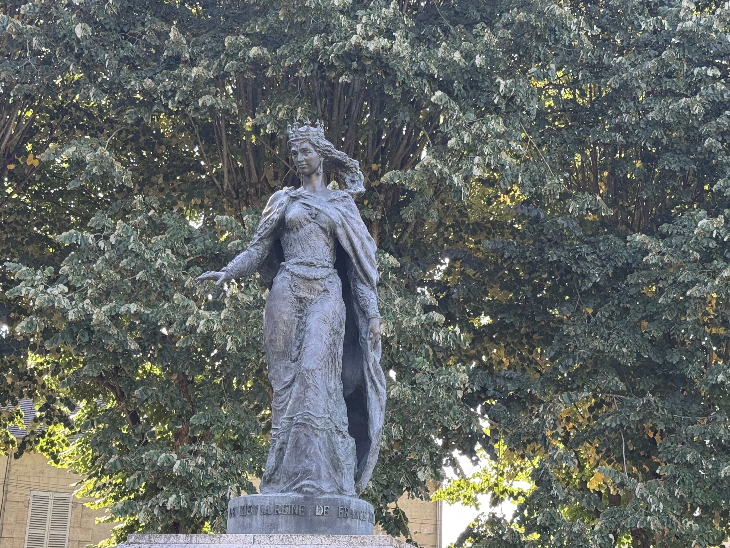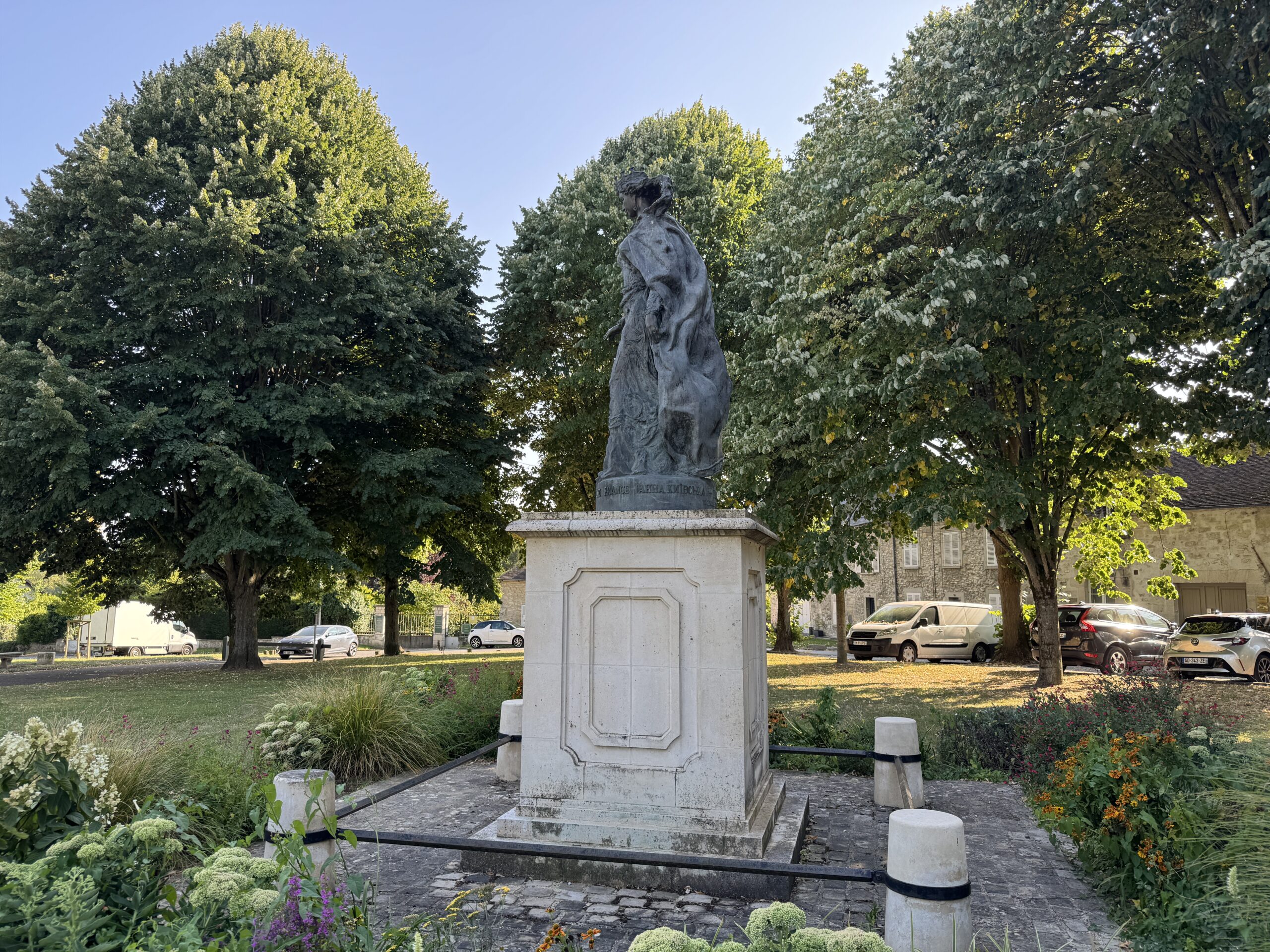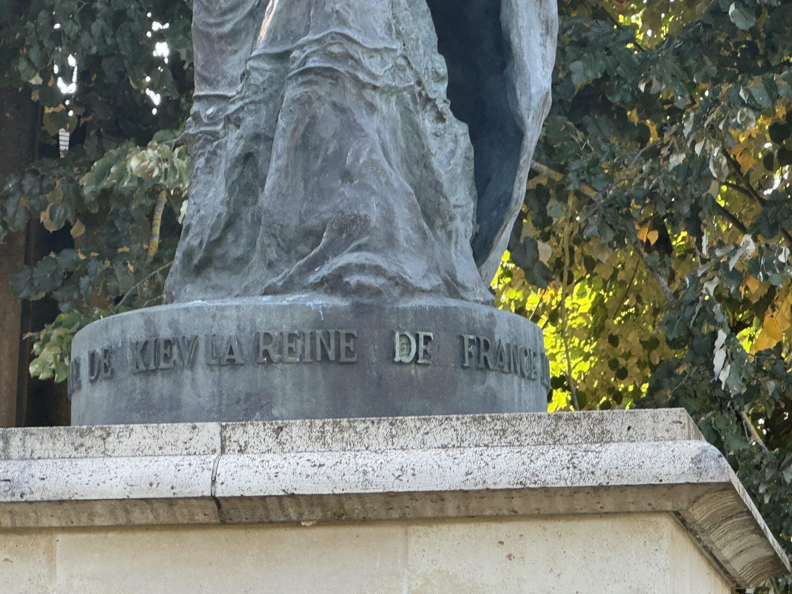 Возвращаясь домой после изучения Шантийи — в конце треьего дня нашего путешествия, 11 августа 2025 года — мы заехали к памятнику Анны Киевской в Санлис — Statue d’Anne de Kiev (Pl. des Arènes, 60300 Senlis)