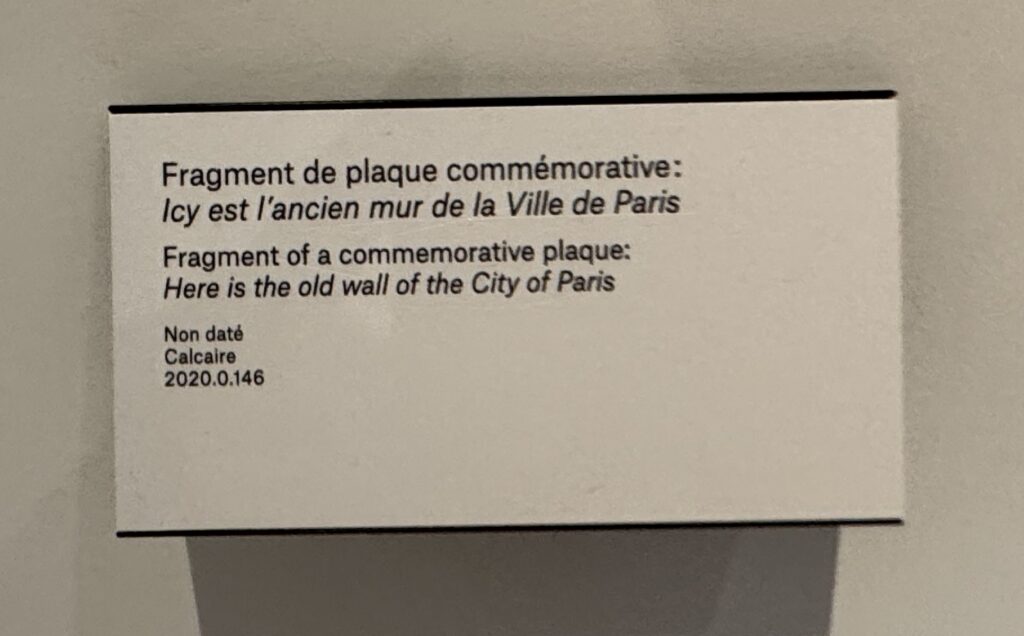 Фрагмент мемориальной доски: Вот старая стена города Парижа. Без даты Известняк