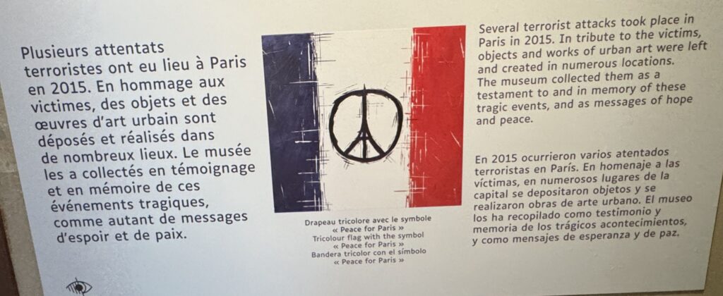 Парижские теракты. Дань памяти жертвам. Спустя десять лет после террористических атак 7, 8, 9 января и 13 ноября 2015 года Музей Карнавале – История Парижа представляет подборку анонимных пожертвований, собранных на местах терактов, а также произведений городского искусства, созданных в связи с трагическими событиями.