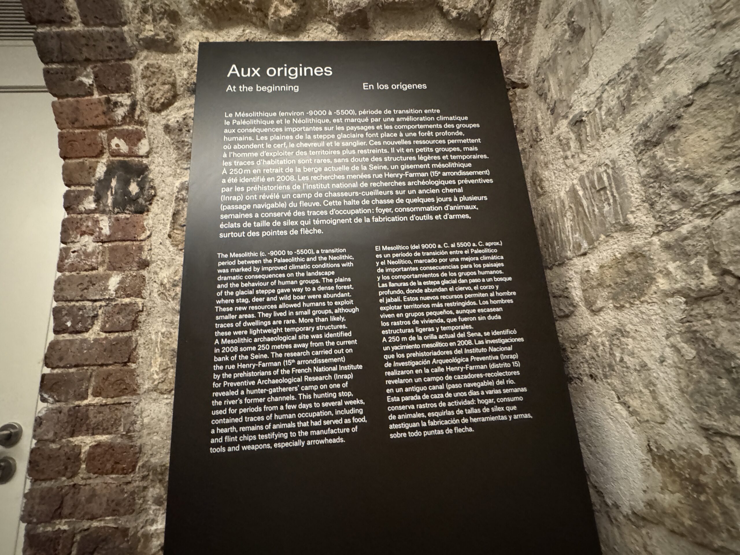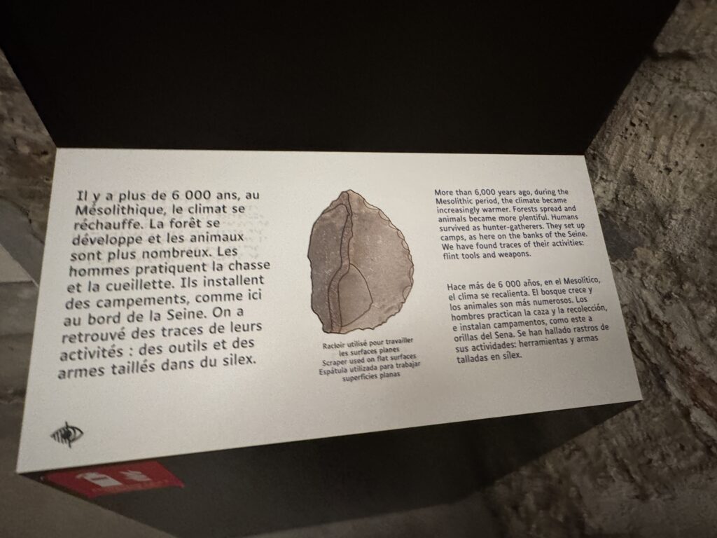 Более 6000 лет назад, в эпоху мезолита, климат потеплел. Леса разрослись, а популяция животных увеличилась. Люди занимались охотой и собирательством, устраивая лагеря, подобные этому, на берегах Сены. Были найдены следы их деятельности: кремневые орудия и оружие.