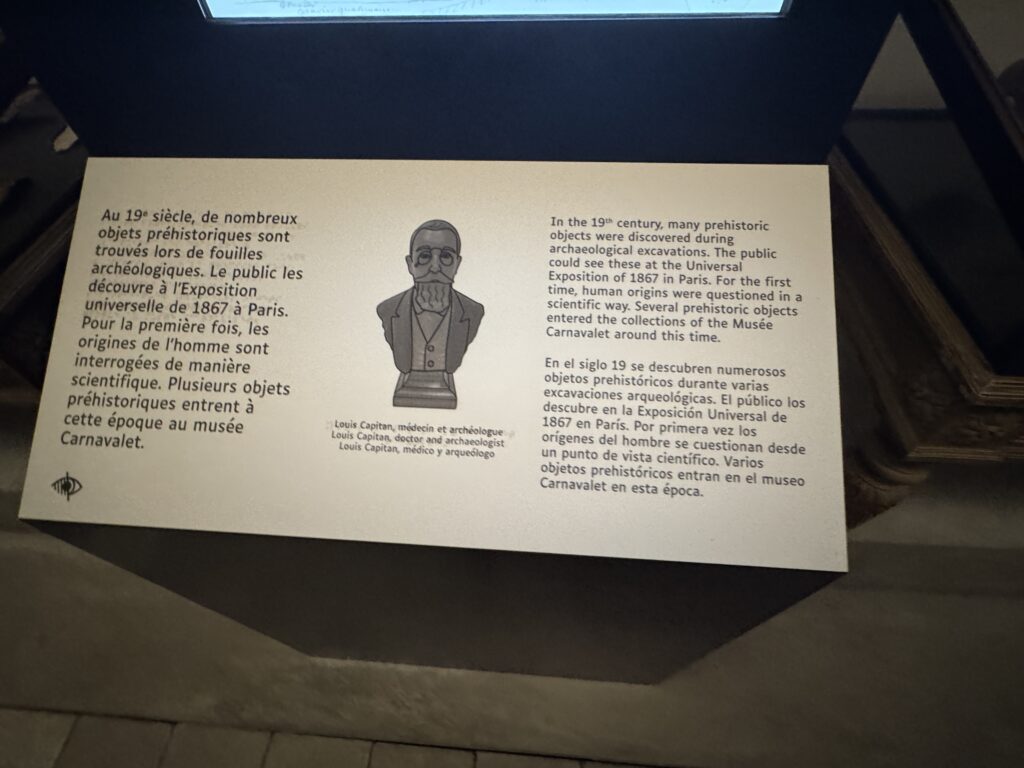 Расцвет доисторической археологии пришелся на вторую половину XIX века, после многочисленных открытий во Франции и Европе. В 1867 году, во время Всемирной выставки, галерея «История труда» впервые представила доисторические предметы, что вызвало новые дебаты вокруг вопроса о происхождении человека. Габриэль де Мортилье (1821–1898), основатель престижного Международного конгресса по доисторической археологии и антропологии, превратившего доисторическую науку в серьёзную научную дисциплину, отвечал за организацию археологической экспозиции по периодам и методам. В тот же период археологи, учёные и коллекционеры (включая Теодора Ваккера, Луи Капитана, Жюля Ребу и Шарля Пикетти) провели многочисленные раскопки и исследовательские проекты, способствовавшие обогащению коллекций нового Музея Карнавале. Важные работы по строительству канализационной системы и снабжению родниковой водой, проведенные инженером Эженом Бельграном (1810-1878), также привели к новым археологическим открытиям.