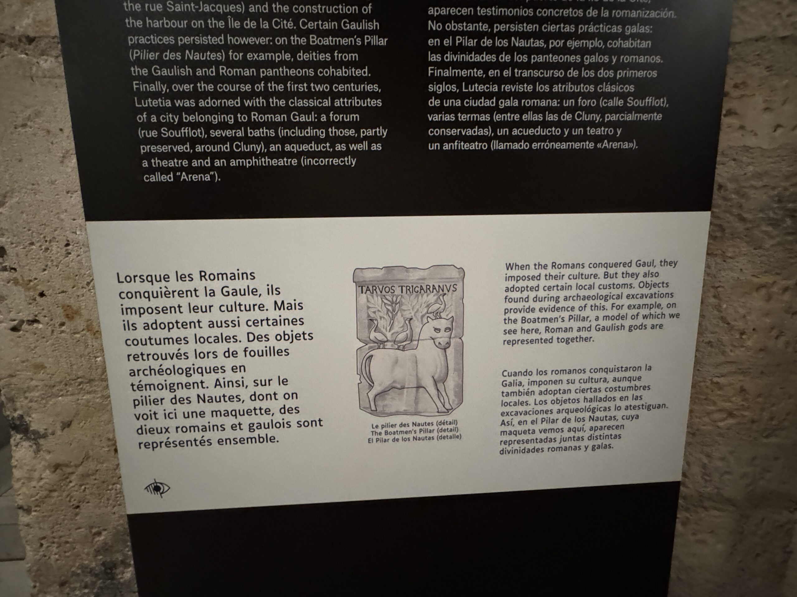 Завоевав Галлию, римляне навязали ей свою культуру. Но при этом переняли и некоторые местные обычаи. Об этом свидетельствуют предметы, найденные при археологических раскопках. Например, на Колонне мореплавателей, макет которой мы видим здесь, римские и галльские боги изображены вместе.