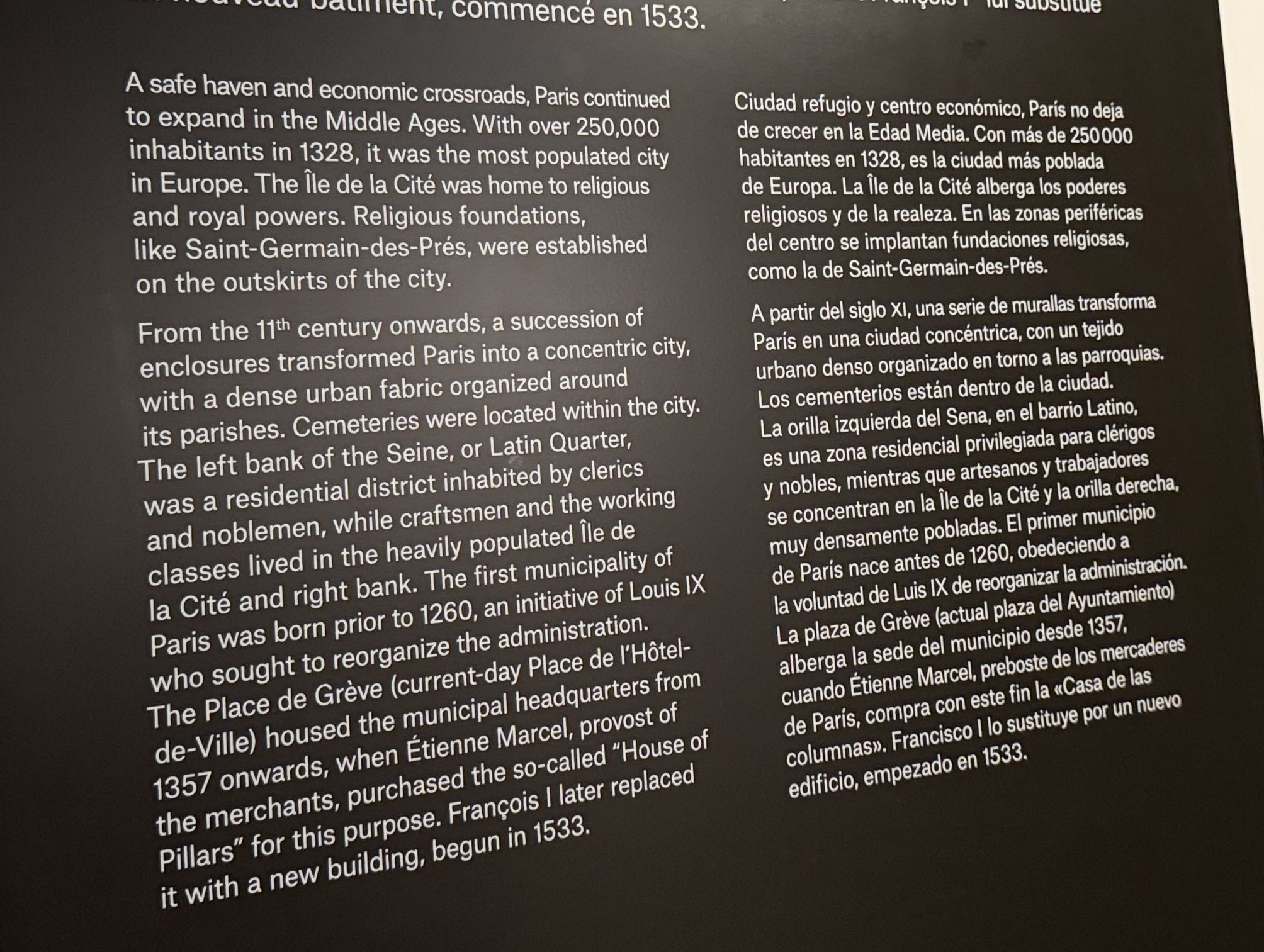 Левый берег Сены, или Латинский квартал, был жилым районом, населённым духовенством и дворянством, в то время как ремесленники и рабочий класс жили на густонаселённом острове Сите и правом берегу. Первый муниципалитет Парижа появился до 1260 года по инициативе Людовика IX, который стремился реорганизовать управление. На Гревской площади (нынешней площади Отель-де-Виль) располагалась городская резиденция с 1357 года, когда Этьен Марсель, прево купцов, приобрёл для этой цели так называемый «Дом с колоннами». Позднее Франциск I заменил его новым зданием, строительство которого началось в 1533 году.