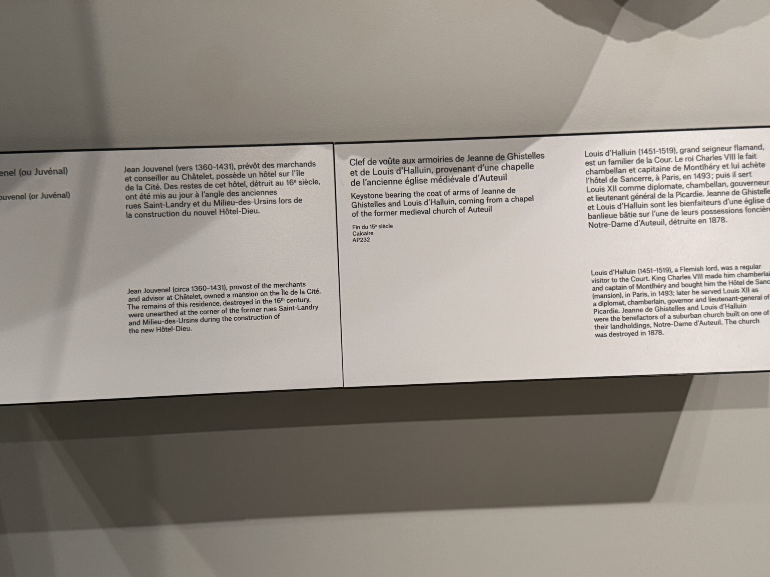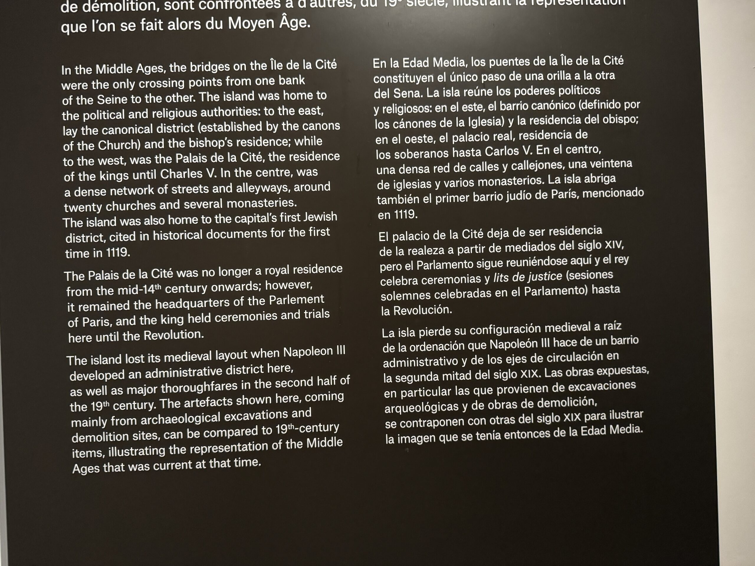 Остров утратил свою средневековую планировку, когда Наполеон III во второй половине XIX века основал здесь административный район и основные транспортные магистрали. Представленные здесь артефакты, полученные в основном из археологических раскопок и с мест сноса зданий, можно сравнить с предметами XIX века, иллюстрируя представление о Средневековье, распространенное в то время.