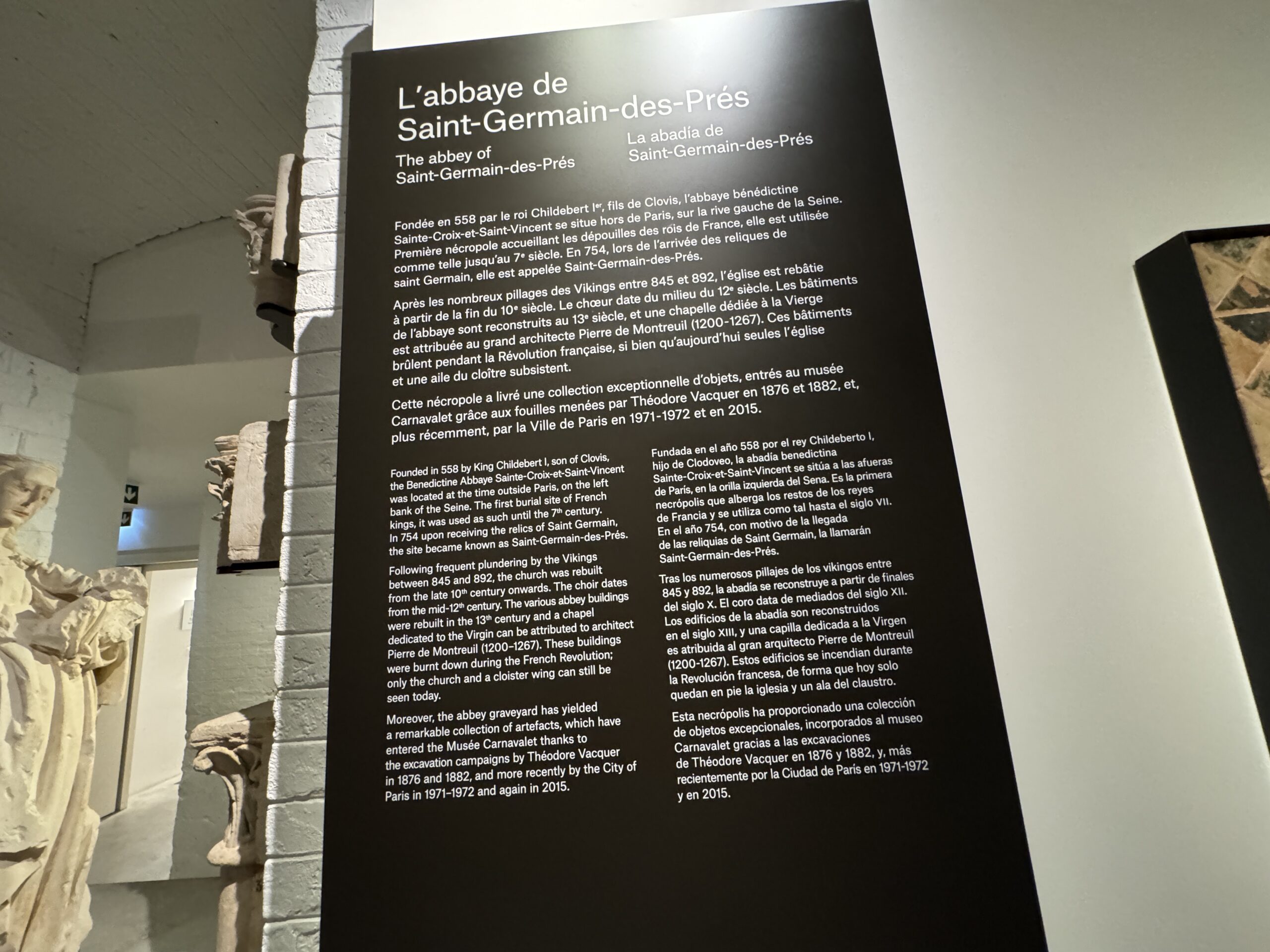 Аббатство Сен-Жермен-де-Пре. Бенедиктинское аббатство Сент-Круа-э-Сен-Венсан, основанное в 558 году королём Хильдебертом I, сыном Хлодвига, расположено недалеко от Парижа, на левом берегу Сены. Это был первый некрополь, где захоронены останки французских королей, и он использовался в этом качестве до VII века. В 754 году, когда туда прибыли мощи Сен-Жермена, монастырь стал называться Сен-Жермен-де-Пре.