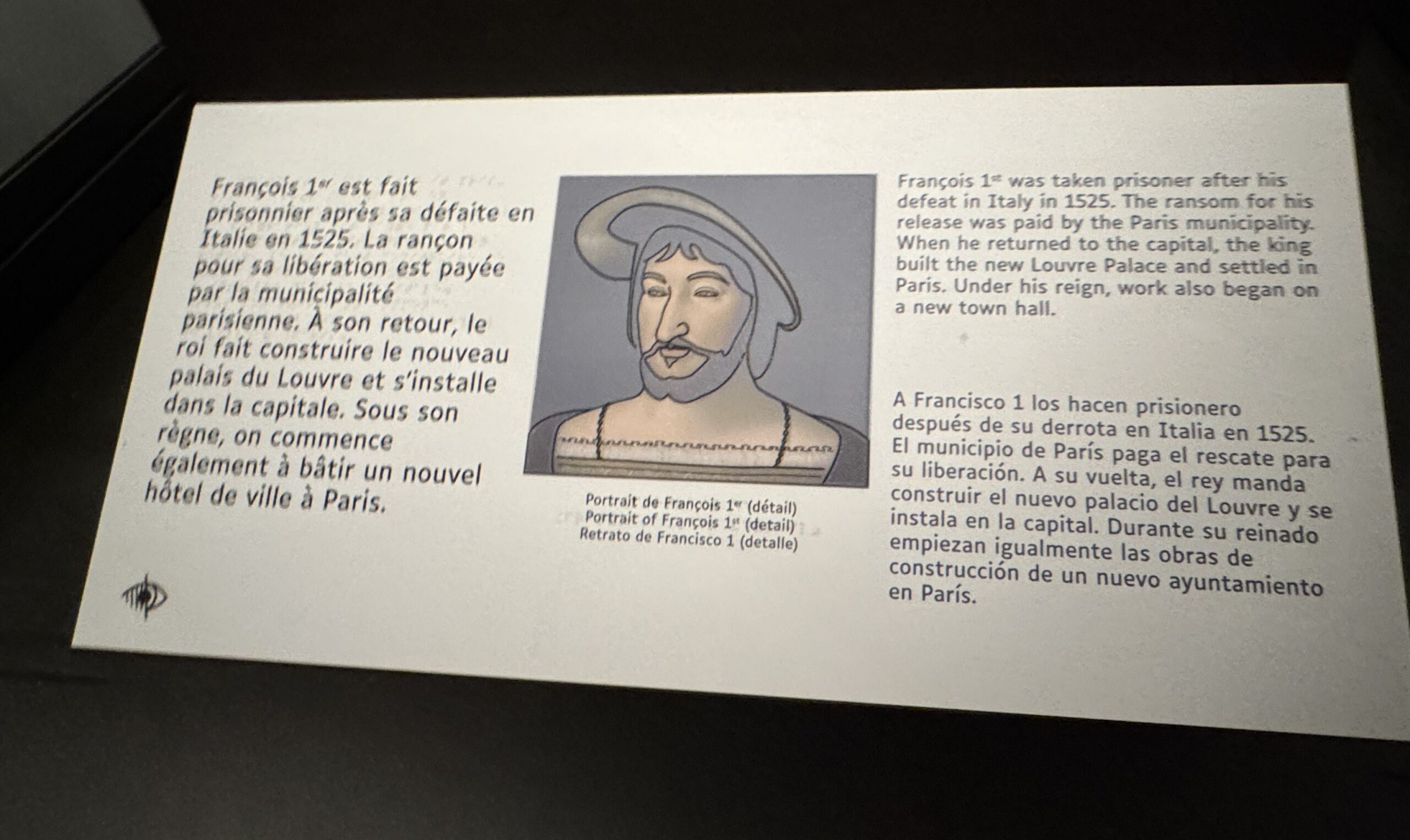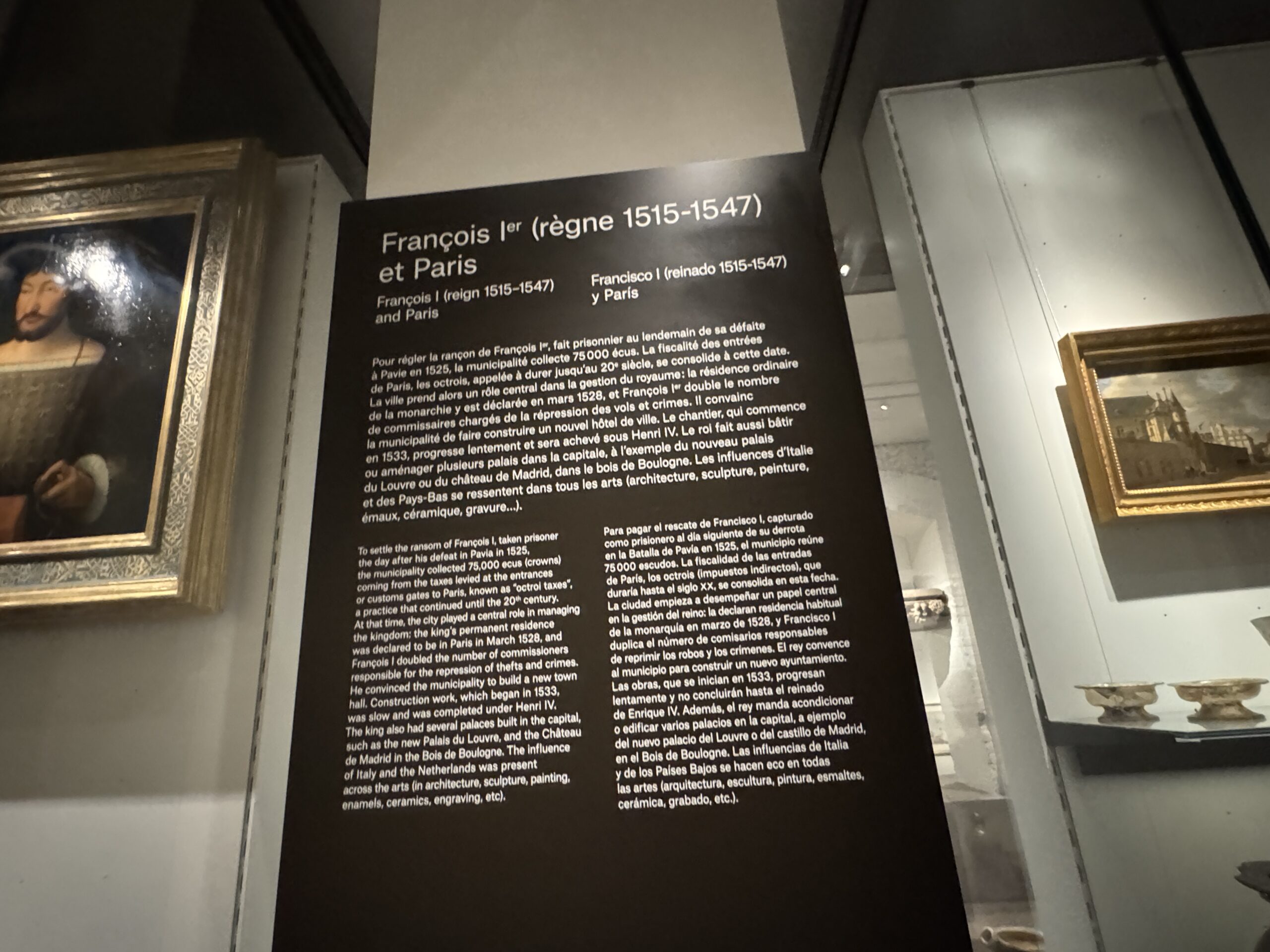 Чтобы выплатить выкуп за Франциска I, взятого в плен после поражения при Павии в 1525 году, муниципалитет собрал 75 000 экю. В этот день был утверждён налог на въезд в Париж (octrois), который просуществовал до XX века. Город взял на себя центральную роль в управлении королевством: в марте 1528 года он был объявлен постоянной резиденцией монарха, а Франциск I удвоил число комиссаров, ответственных за пресечение краж и преступлений. Он убедил муниципалитет построить новую ратушу. Строительство, начавшееся в 1533 году, продвигалось медленно и было завершено при Генрихе IV. Король также построил или отреставрировал несколько дворцов в столице, таких как новый Лувр и Мадридский замок в Булонском лесу. Влияние Италии и Нидерландов ощущается во всех видах искусства (архитектура, скульптура, живопись, эмаль, керамика, гравюра и т. д.).