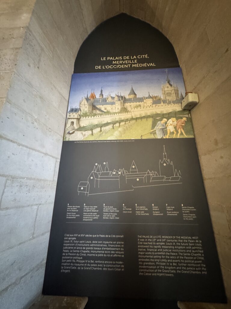 Консъержери — достопримечательность, известная туристам, и билеты достались нам чудом, причем только в тюрьму. Церковь была раскуплена полностью. Консъержери, как и все замки Великолепного часослова герцога Беррийского (см выставку), очень гордится своим изображением.