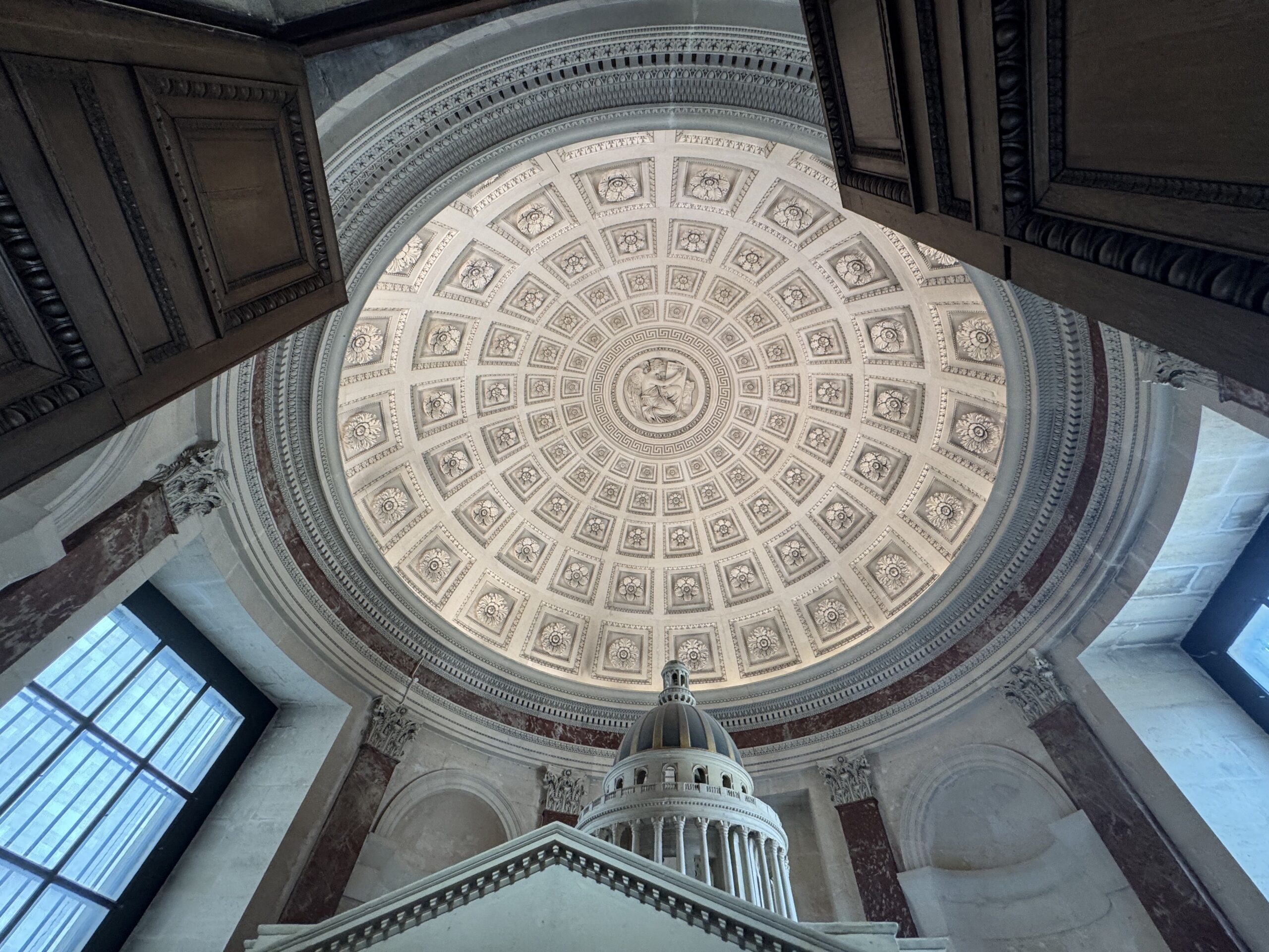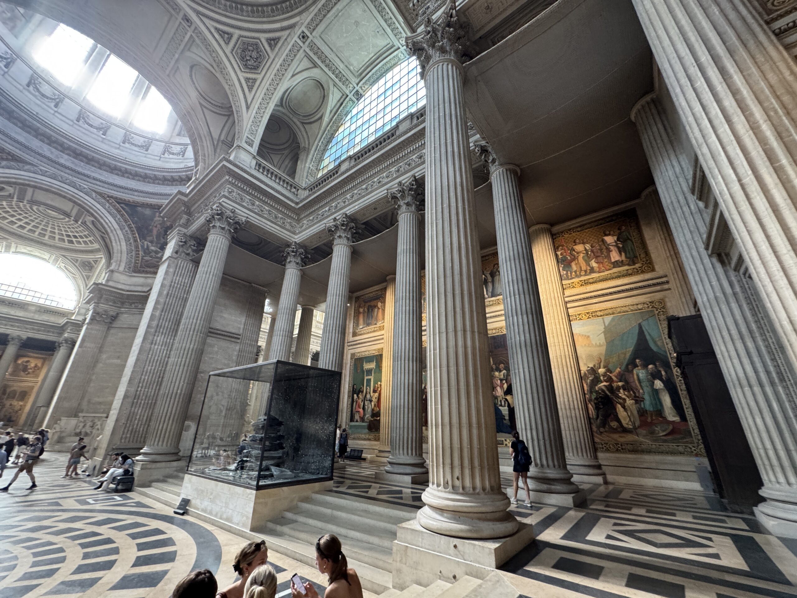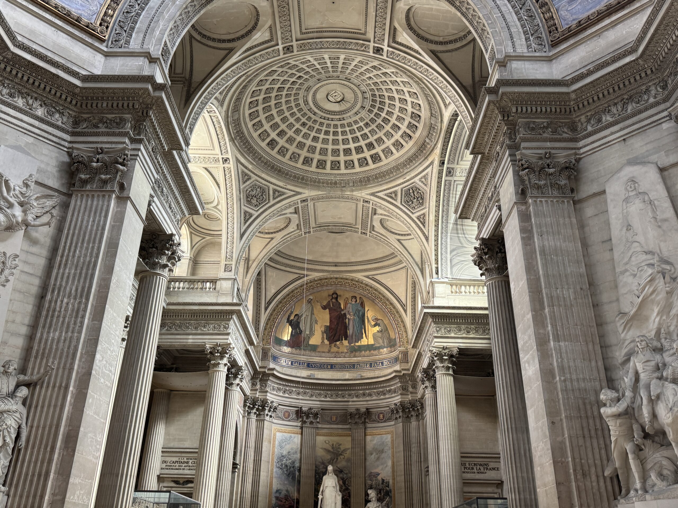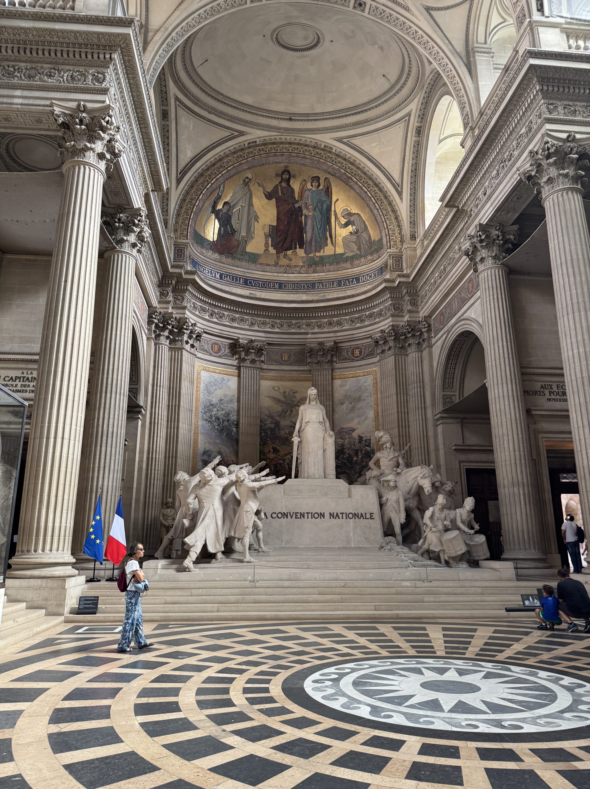 Шестой день нашего путешествия во Францию — и мы едем в Пантеон. Парижский Пантеон создавался как церковь Святой Женевьевы по заказу короля Людовика XV в XVIII веке, но по завершении строительства стал мавзолеем для выдающихся деятелей Франции после Французской революции, а в дальнейшем окончательно закрепил свой светский статус усыпальницы.
