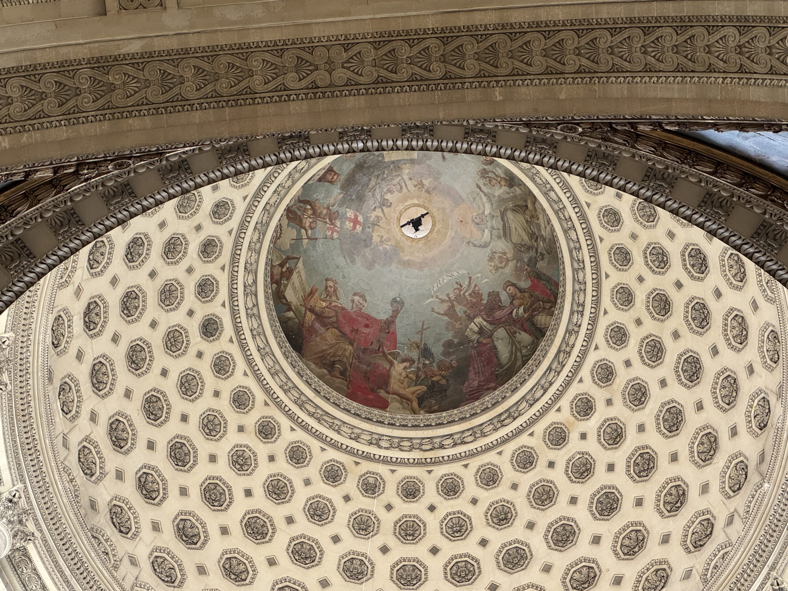 Фрески Пантеона, видимо, потерялись из-за особенностей айфона, придумавшего давать фотографиям произвольные номера. Что, при общем объеме фото 10 000+, сильно осложнило написание этого текста. Но ничего, потерять историю святой Женевьевы не смертельно.