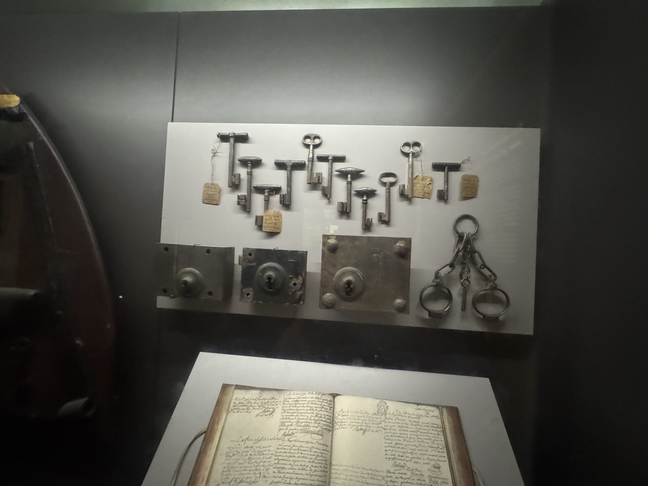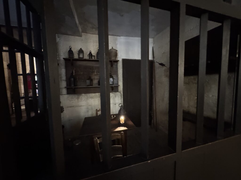 Коридор с камерами. Теснота и темнота этих камер напоминают о тяготах тюремных условий того времени.
