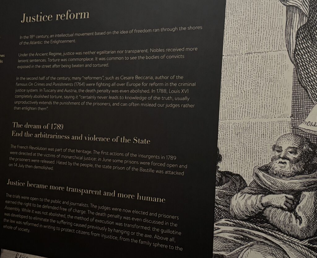 Во второй половине века многие «реформаторы», такие как Чезаре Беккариа, автор знаменитого труда «О преступлениях и наказаниях» (1764), боролись по всей Европе за реформу системы уголовного правосудия. В Тоскане и Австрии была даже отменена смертная казнь. В 1788 году Людовик XVI полностью запретил пытки, заявив, что они «никогда не ведут к познанию истины, обычно безрезультатно удлиняют наказание заключённых и часто могут ввести в заблуждение наших судей, а не просветить их».