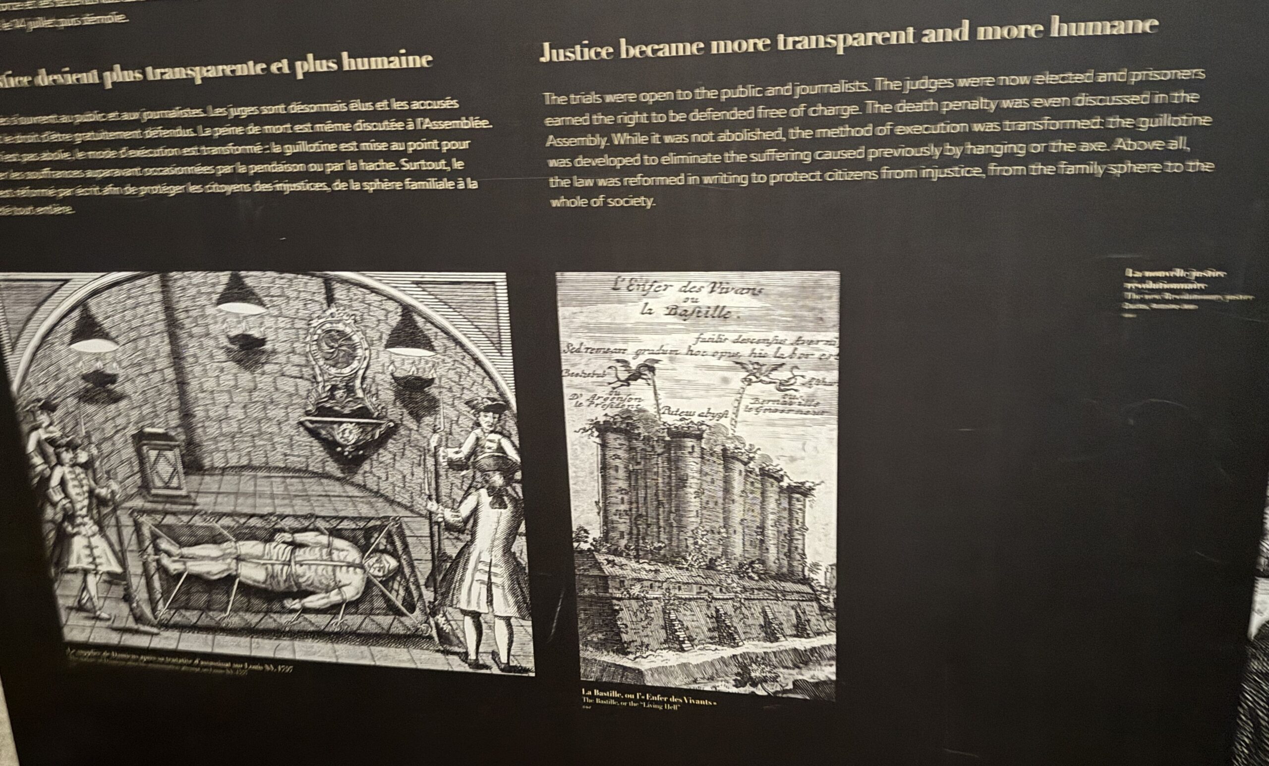 Правосудие стало более прозрачным и гуманным. Судебные процессы были открыты для публики и журналистов. Судьи теперь избирались, а заключённые получили право на бесплатную защиту. Смертная казнь даже обсуждалась в Ассамблее. Хотя она не была отменена, способ казни был изменён: была разработана гильотина, чтобы устранить страдания, причиняемые ранее повешением или топором. Прежде всего, была реформирована письменная часть закона, чтобы защитить граждан от несправедливости, начиная с семейной сферы и заканчивая всем обществом.