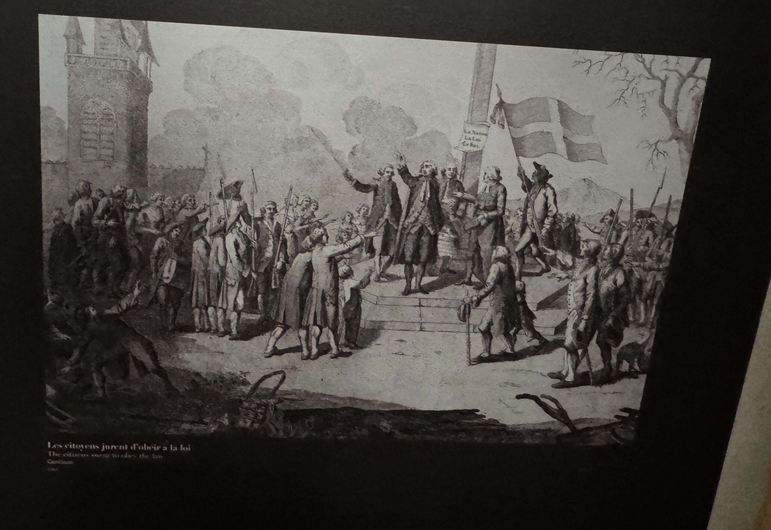 «Более гуманное правосудие. Культ закона. Принятая 26 августа 1789 года Декларация прав человека гарантировала каждому человеку право на «свободу, собственность, безопасность и сопротивление угнетению». Закон стал краеугольным камнем нового общества: чтобы быть хорошим гражданином, теперь необходимо принести присягу «народу, закону и королю». Протестанты и иудеи получили полное гражданство.