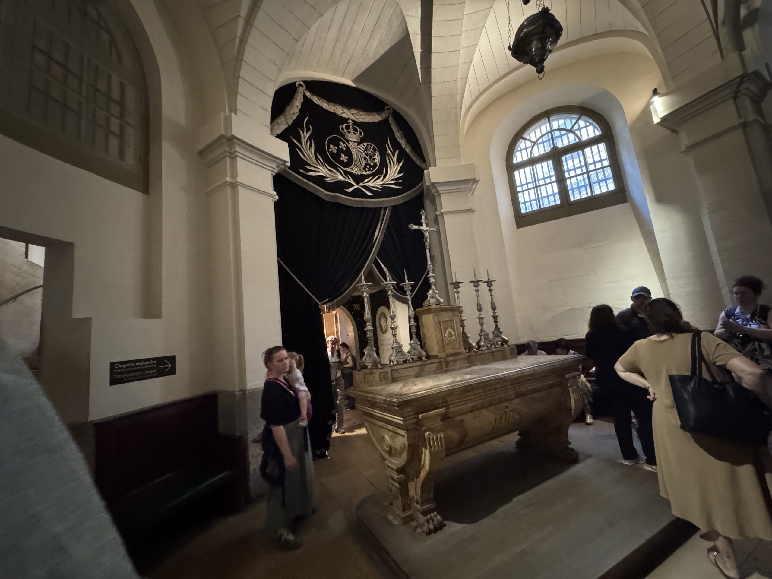 Консъержери — достопримечательность, известная туристам, и билеты достались нам чудом, причем только в тюрьму. Церковь была раскуплена полностью. Консъержери, как и все замки Великолепного часослова герцога Беррийского (см выставку), очень гордится своим изображением.