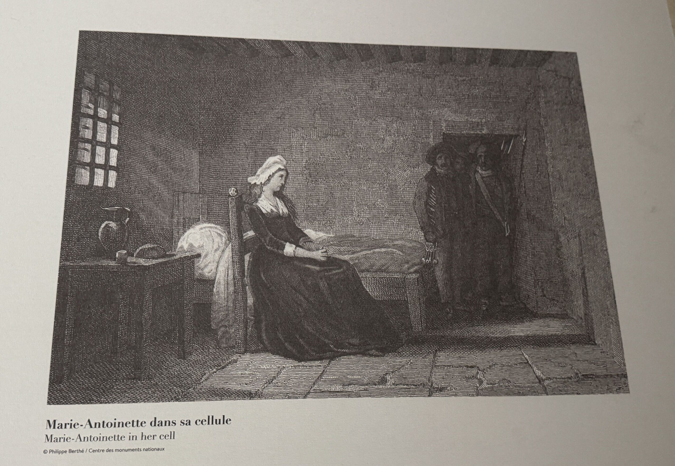 Бывшая королева не была такой же заключённой, как все остальные. Лишённая письменных принадлежностей большую часть времени, она находилась под открытым наблюдением: два жандарма охраняли её днём и ночью, не оставляя ей ни малейшего уединения. Это было величайшим оскорблением для женщины, которая десять лет назад попала в заголовки газет, пытаясь создать себе уединённое пространство посреди двора Трианона в Версале.