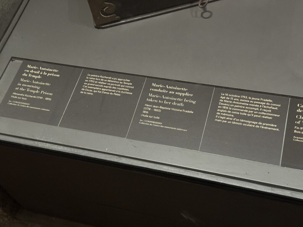 Мария-Антуанетта в трауре в тюрьме Тампль. Александр Кухарский (1741-1819) Масло, дерево. Художник Кухарский смог приблизиться к королеве во время её заключения в Тампле в 1793 году и написать этот портрет, который имел большой успех у роялистов. Эта копия принадлежала герцогине де Дюрас, фрейлине королевского дворца.