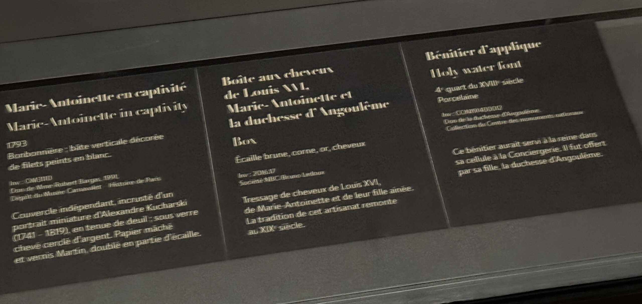 Мощи короля и королевы, «мучеников» Революции, были предметом почитания и спекуляций со времени окончания Революции и в период Реставрации. Мадам Руаяль, дочь Людовика XVI и Марии-Антуанетты, постоянно хранила их у себя. Мадам де Турзель, воспитательница детей Франции до 1792 года, заказала по меньшей мере два реликвария: один в форме катафалка, ныне выставленный в музее Карнавале (История Парижа), и шатлен, подаренный Консьержери её потомками.